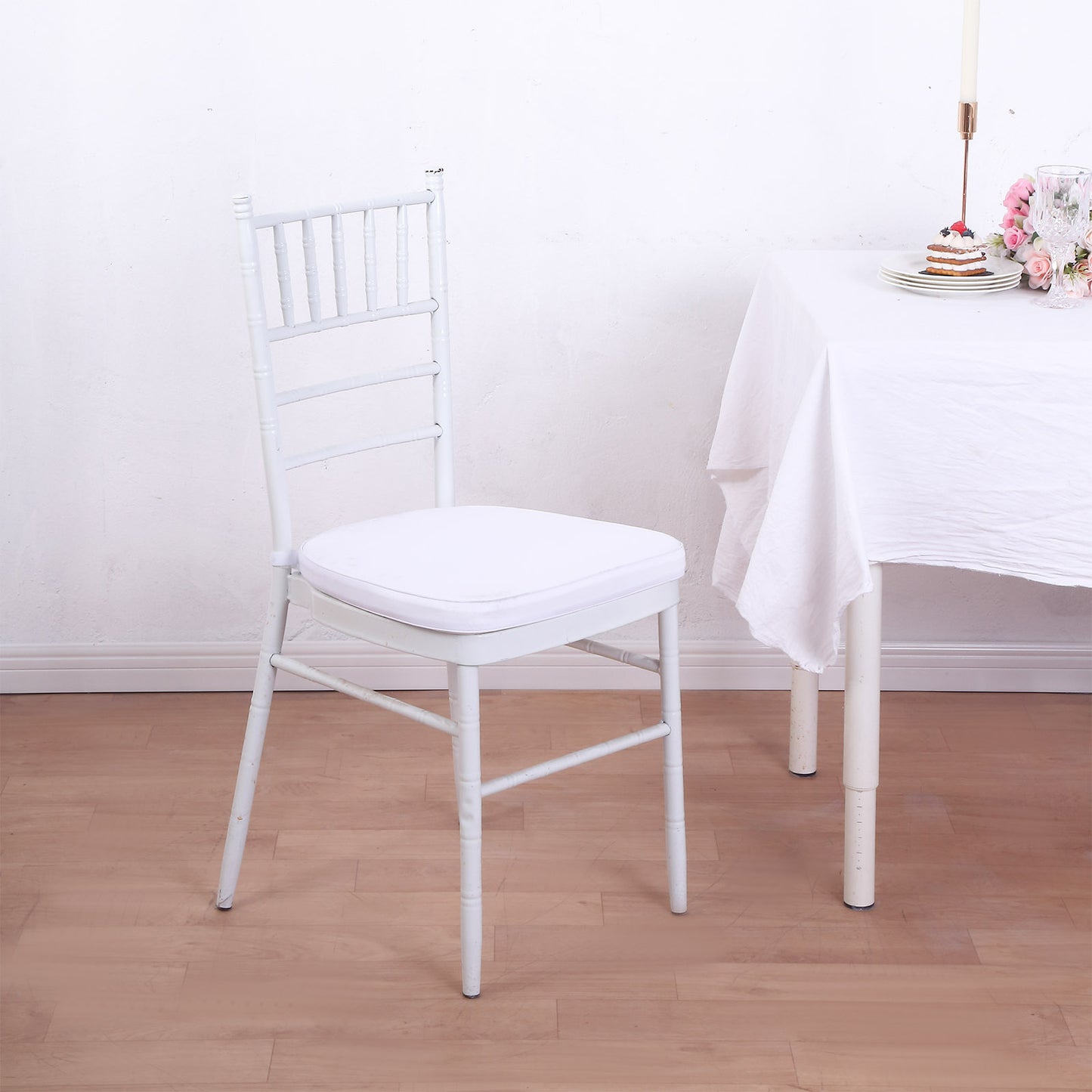 The 1.5" Thick White Chiavari Chair Pad includes Velcro straps for secure attachment. This ensures that the cushions stay in place during events. Your guests can move comfortably without worrying about slipping.