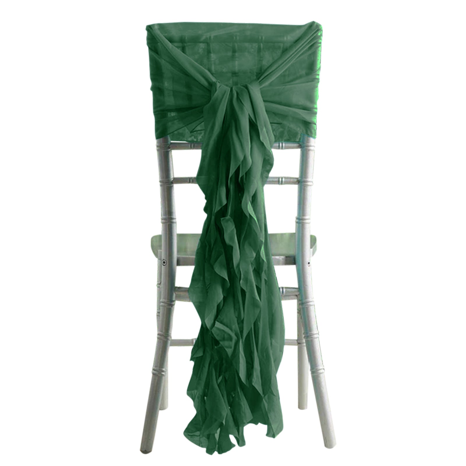 1 Set Hunter Emerald Green Chiffon Hoods With Ruffles Willow Chiffon Chair Sashes