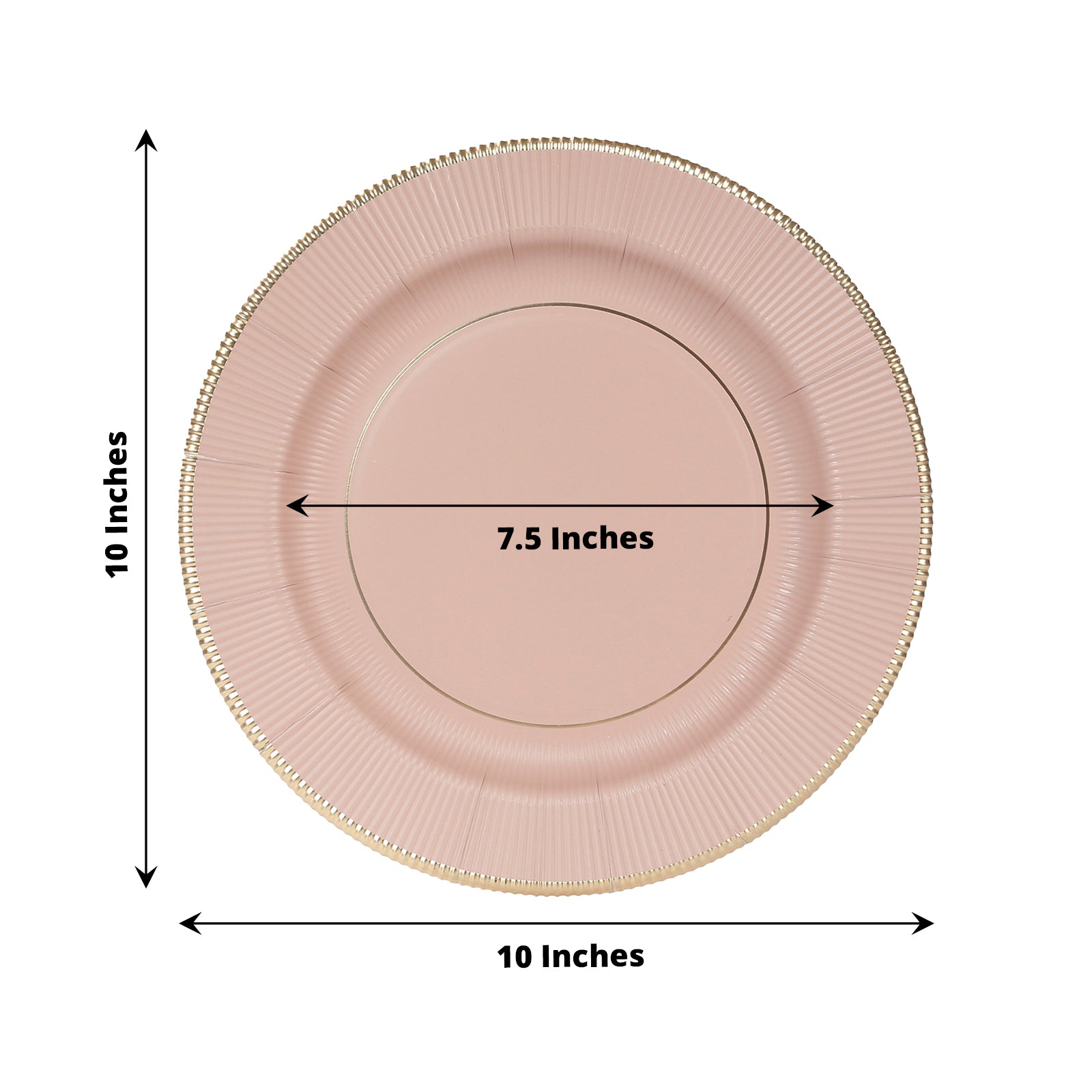 25-Pack Paper 10" Round Dinner Plates in Dusty Rose Sunray Design with Gold Rim - Disposable Heavy Duty 350GSM Party Plates
