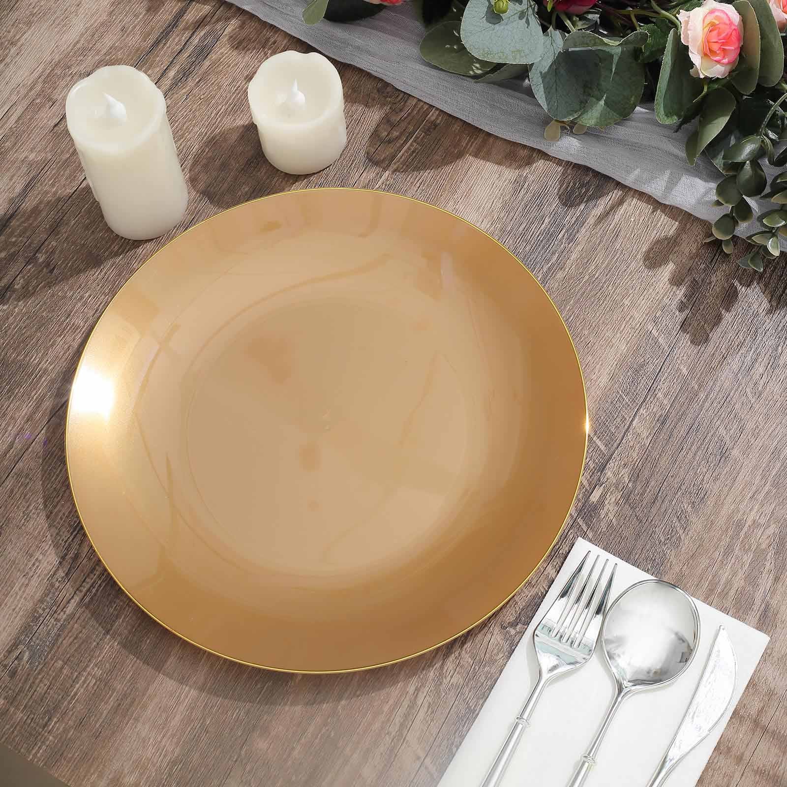 10 Pack | 10" Gold Round Disposable Dinner Plates With Gold Rim, Plastic Party Plates