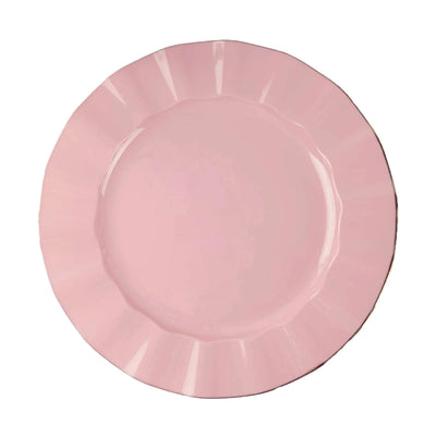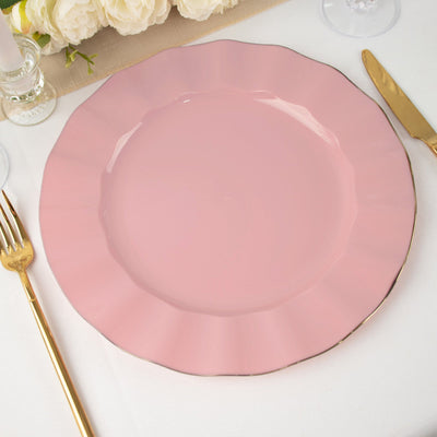 10 Pack | 11" Dusty Rose Disposable Dinner Plates With Gold Ruffled Rim, Round Plastic Party Plates