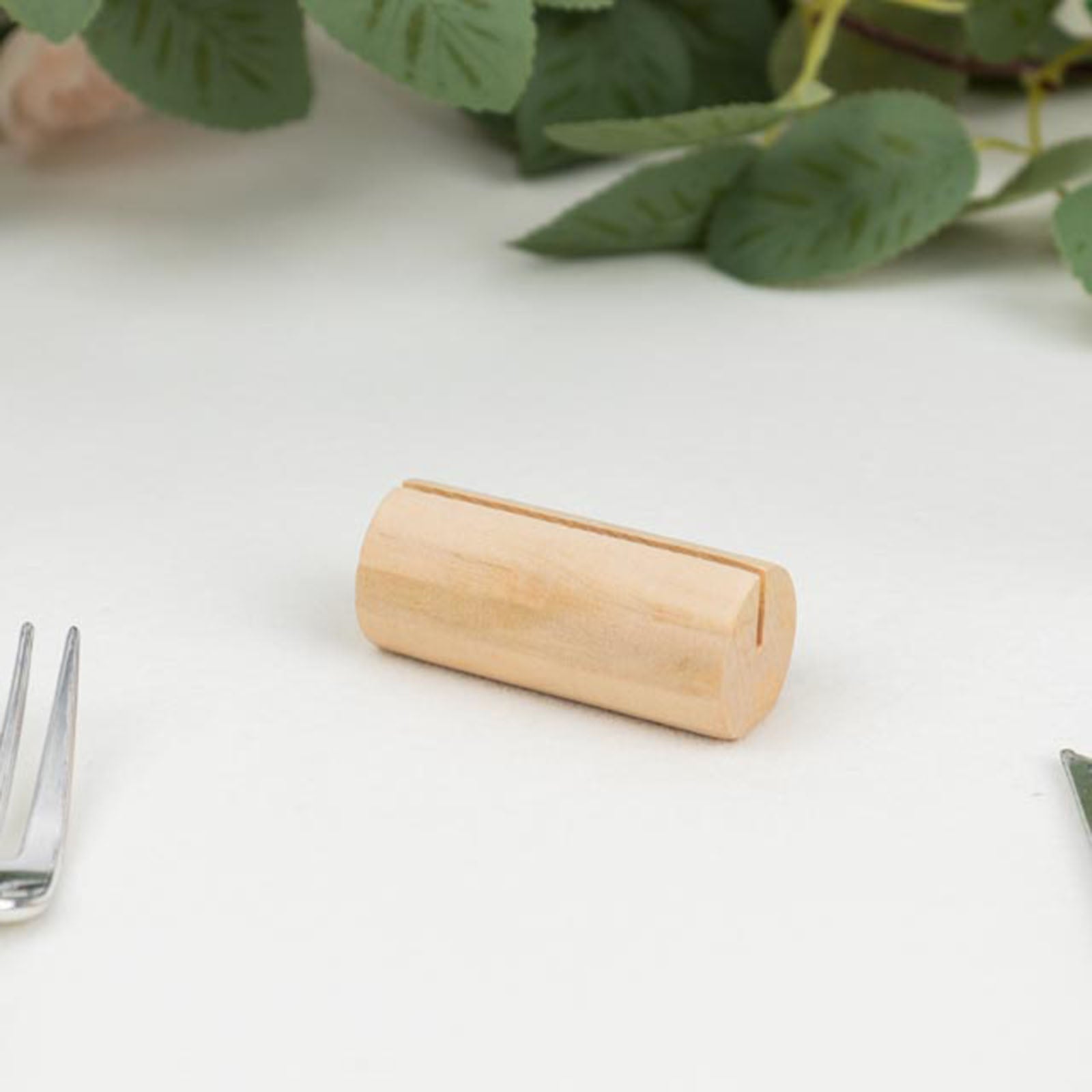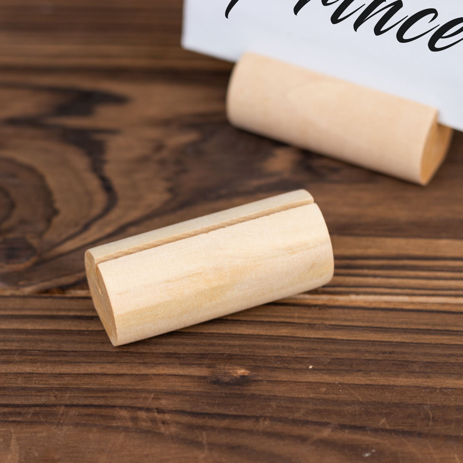 10 Pack | 2" Natural Rustic Style Cylindrical Wooden Place Card Holders, Farmhouse Table Number Stands