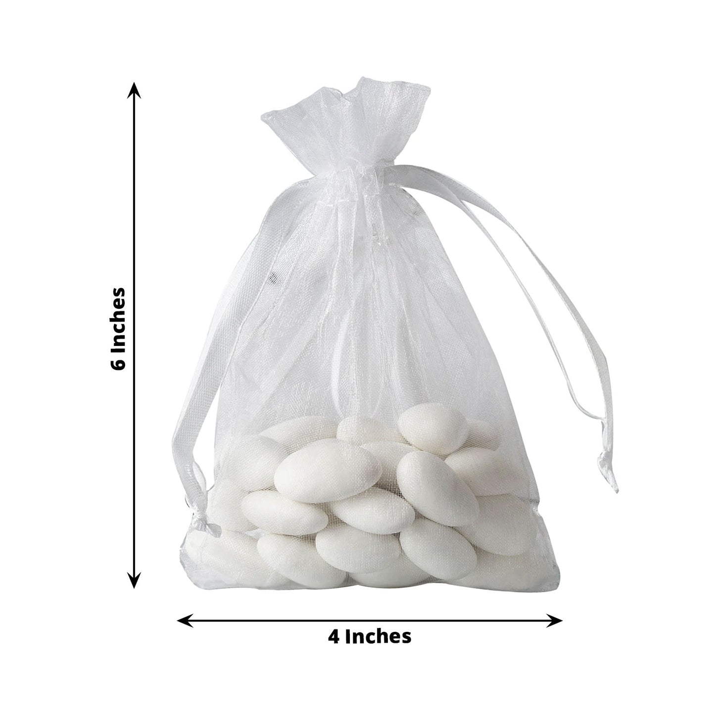10 Pack | 4"x6" White Organza Drawstring Wedding Party Favor Gift Bags