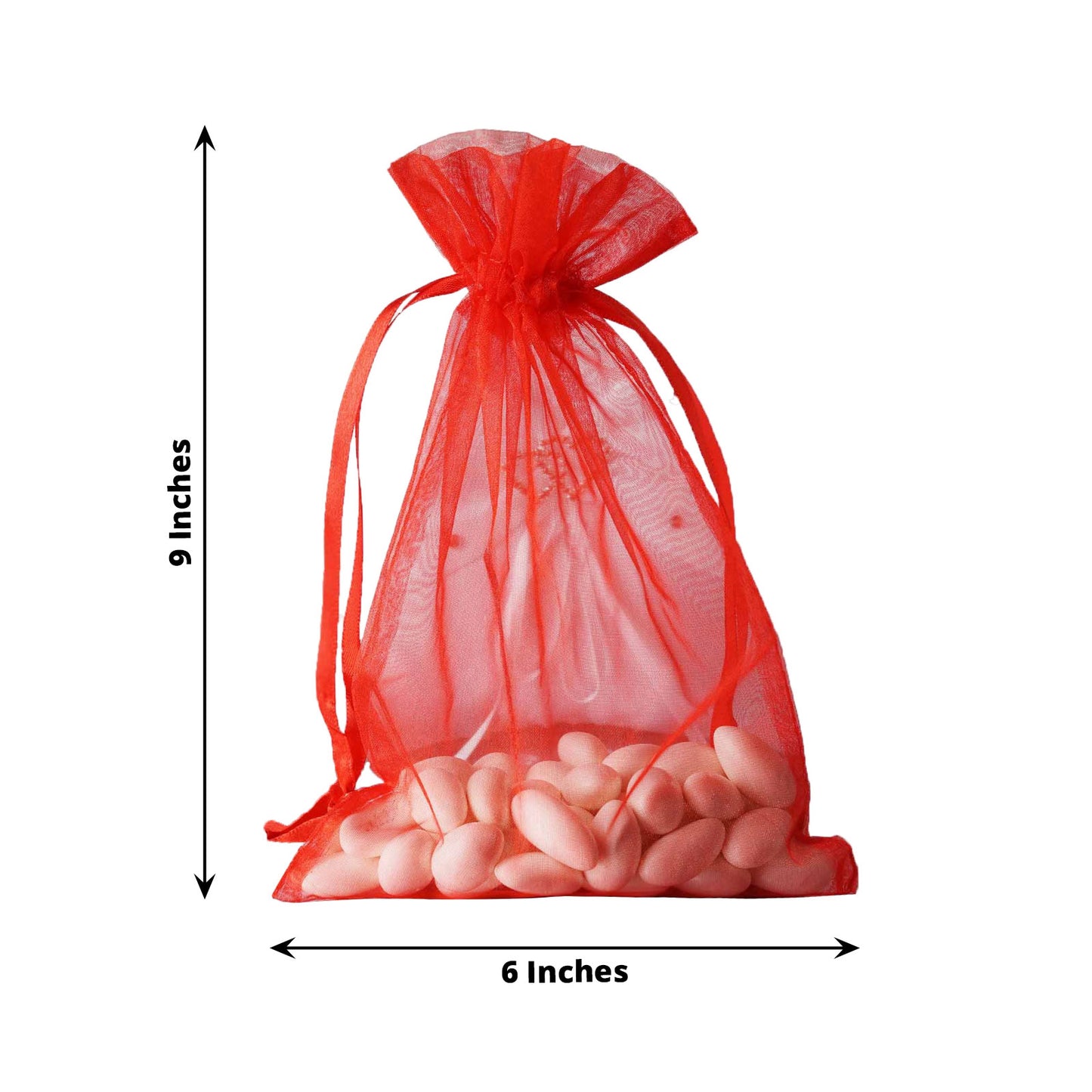 10 Pack | 6"x9" Red Organza Drawstring Wedding Party Favor Gift Bags