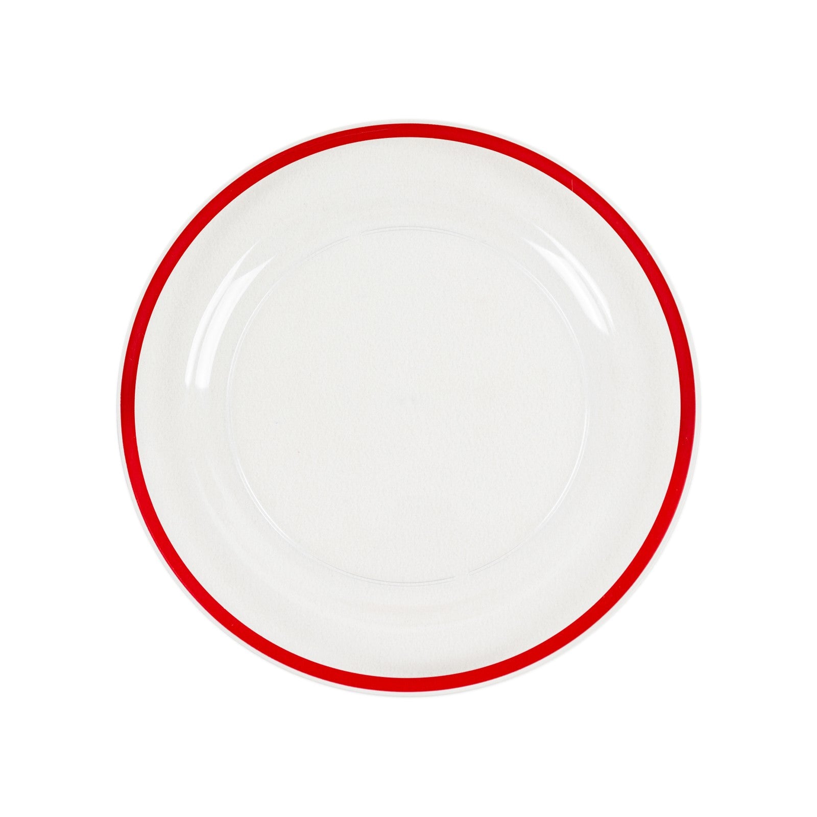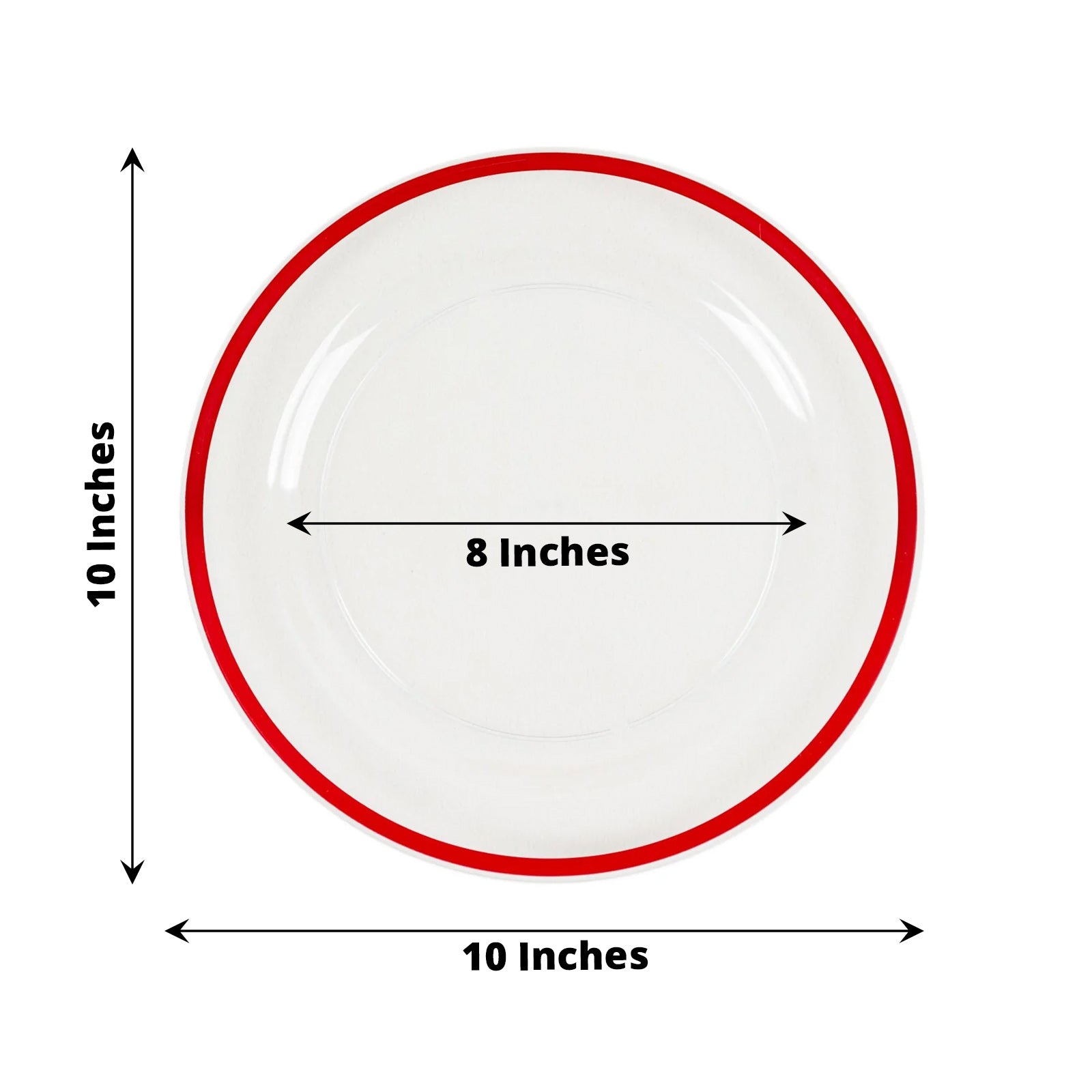 10 Pack Clear Regal Disposable Party Plates With Red Rim, 10" Round Plastic Dinner Plates