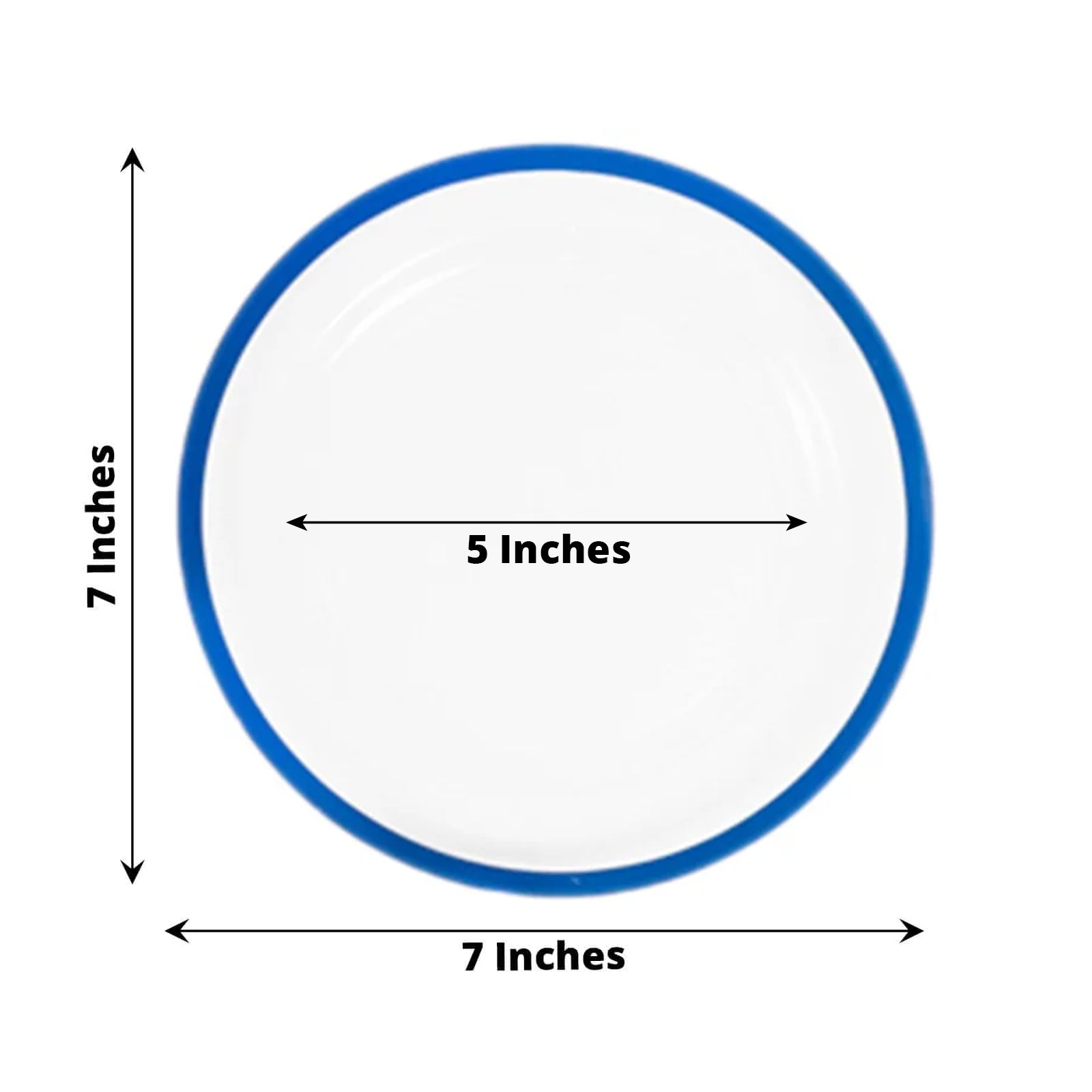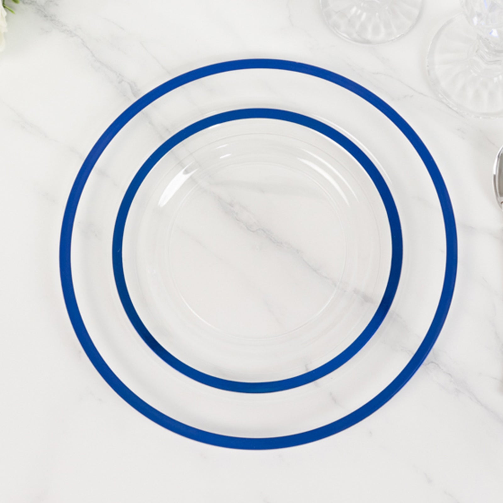 10 Pack Clear Regal Disposable Salad Plates With Blue Rim, 7" Round Plastic Appetizer Dessert Plates