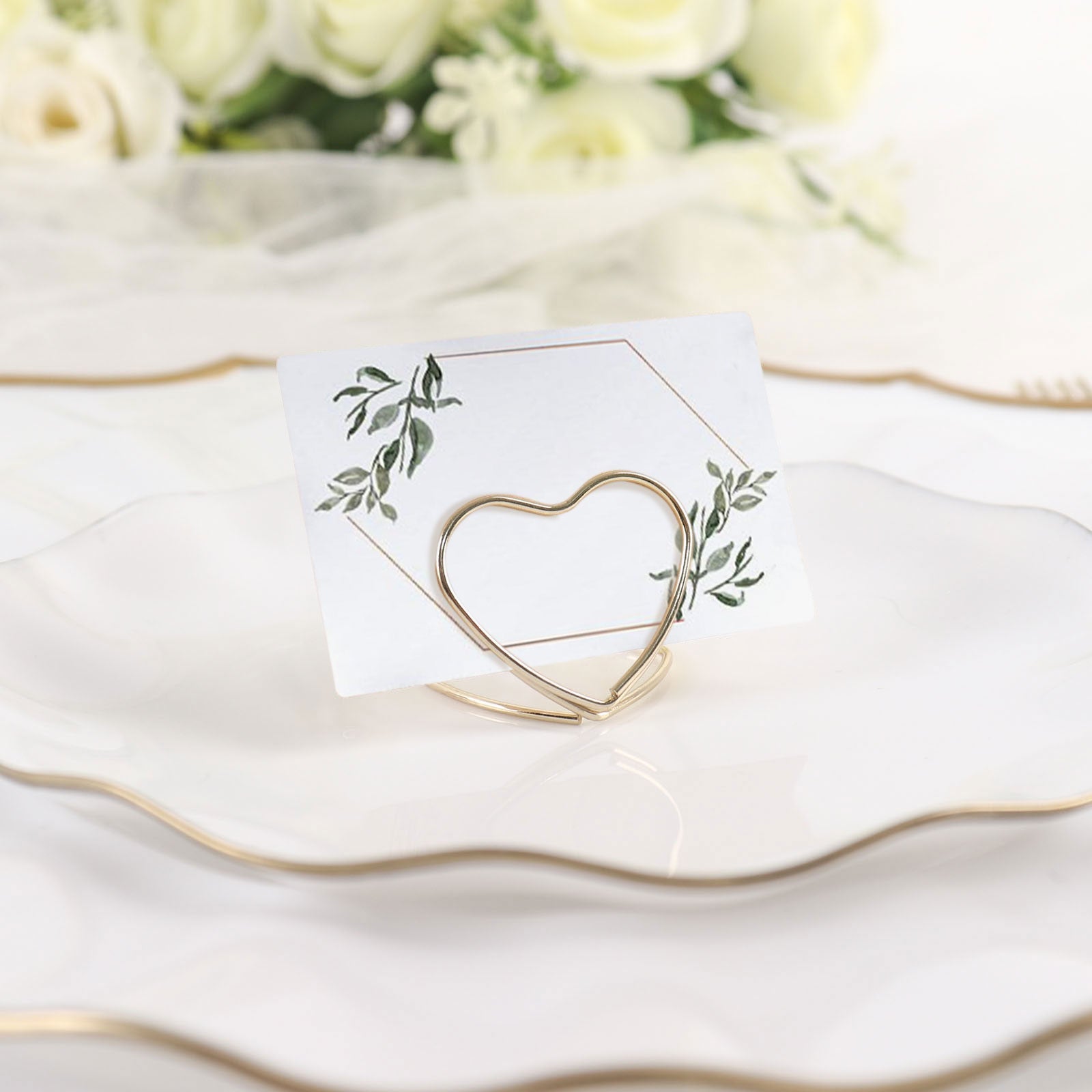 10 Pack | Gold Metal 1" Double Heart Card Holder Stands, Table Number Stands, Wedding Table Place Card Menu Clips