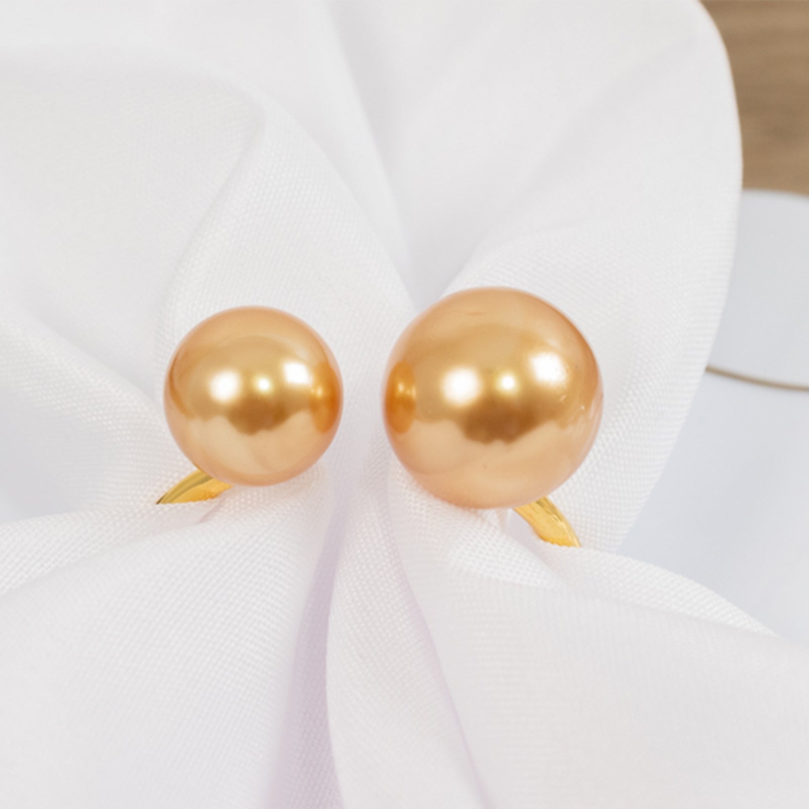 Picture this: soft candlelight reflecting off shimmering tablecloths, beautifully folded cloth napkins secured by these stunning gold and pearl accents. The effortless design complements both traditional and contemporary aesthetics, making it a versatile addition to your decor. As guests take their seats, they'll marvel at the attention to detail, setting the perfect tone for a memorable celebration.