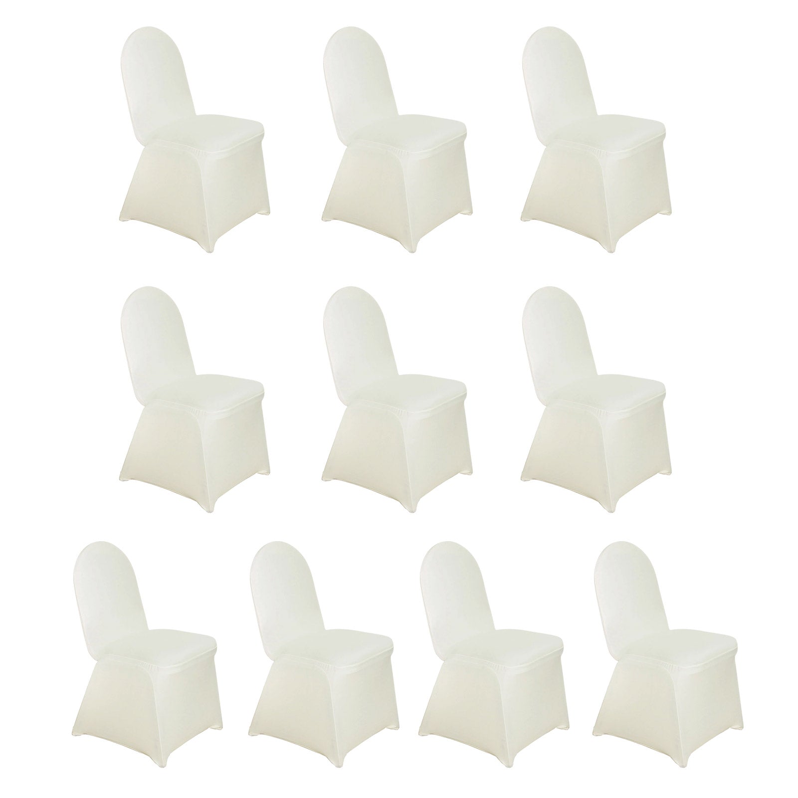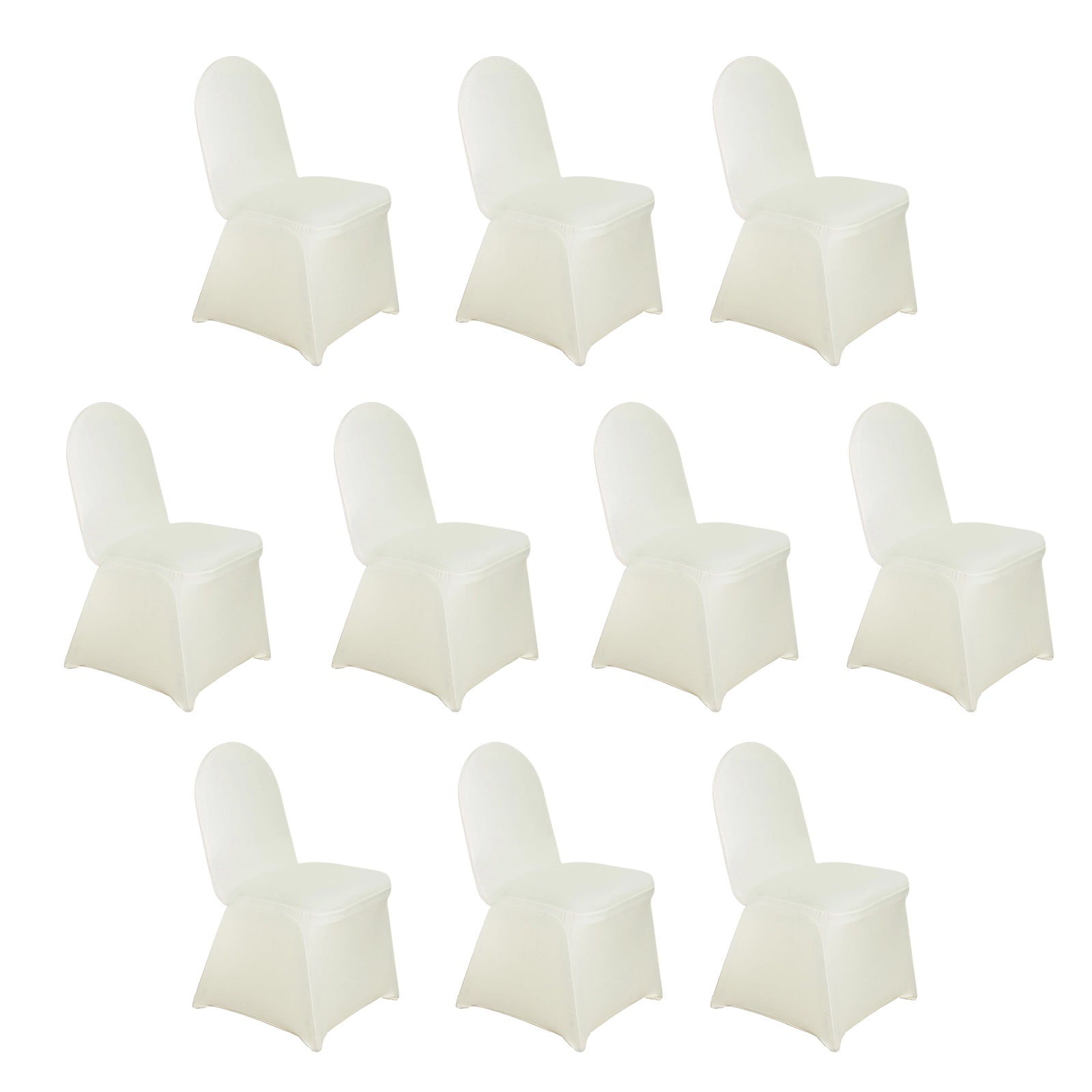 10 Pack Ivory Spandex Fitted Banquet Chair Covers, Reusable Stretched Slip On Chair Covers