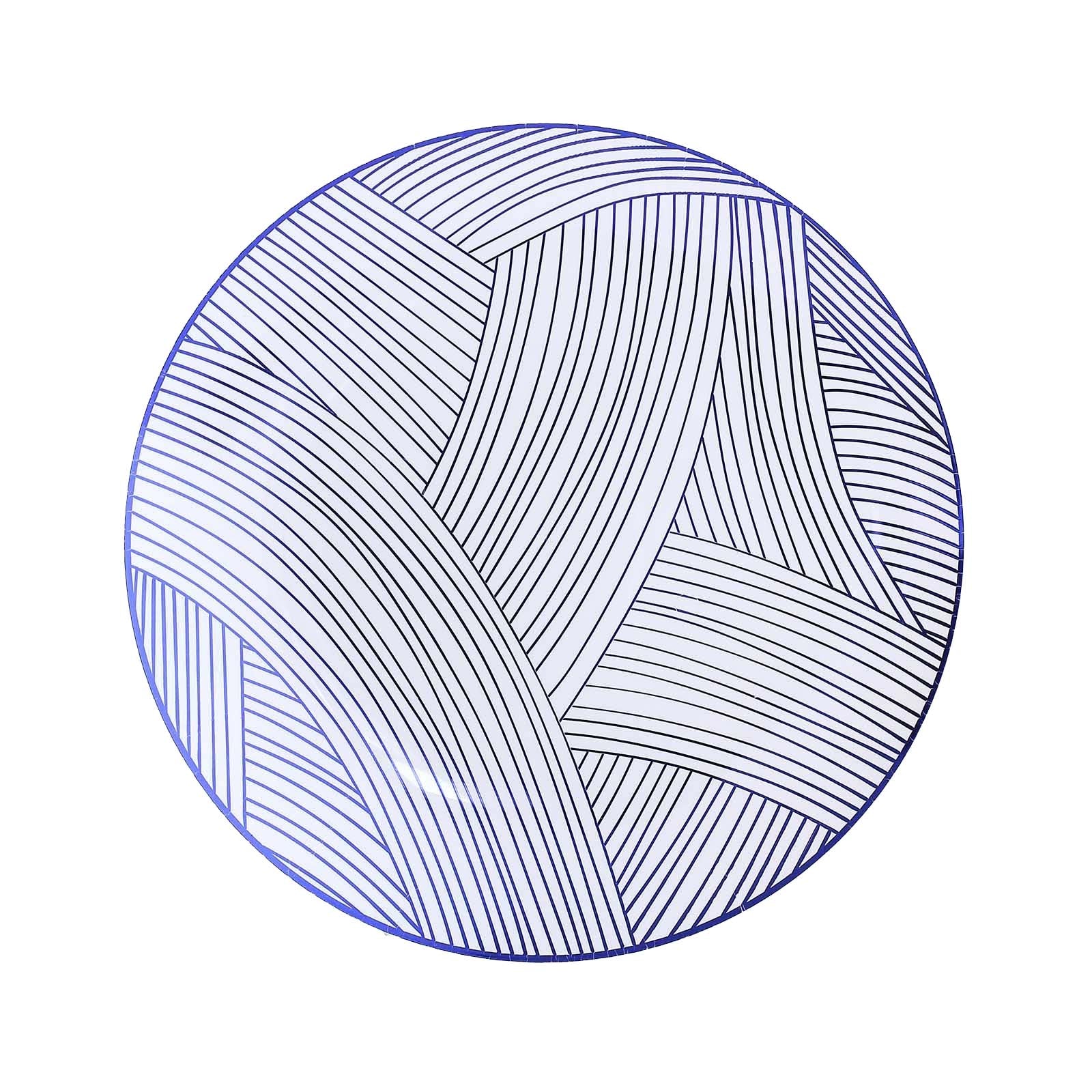 10 Pack White Blue Wave Brush Stroked Disposable Party Plates, Round Plastic Dinner Plates - 10"