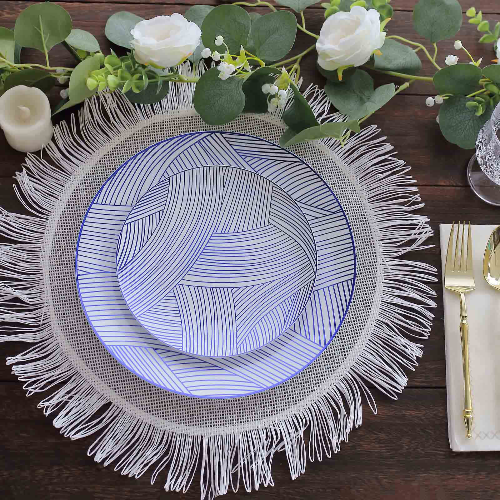 Using disposable plates doesn't mean sacrificing style. You can create beautiful table settings with our White Blue Wave Brush Stroked Disposable Party Plates. Pair them with matching table runners and napkins for a cohesive look. This enhances the overall decor of your event.