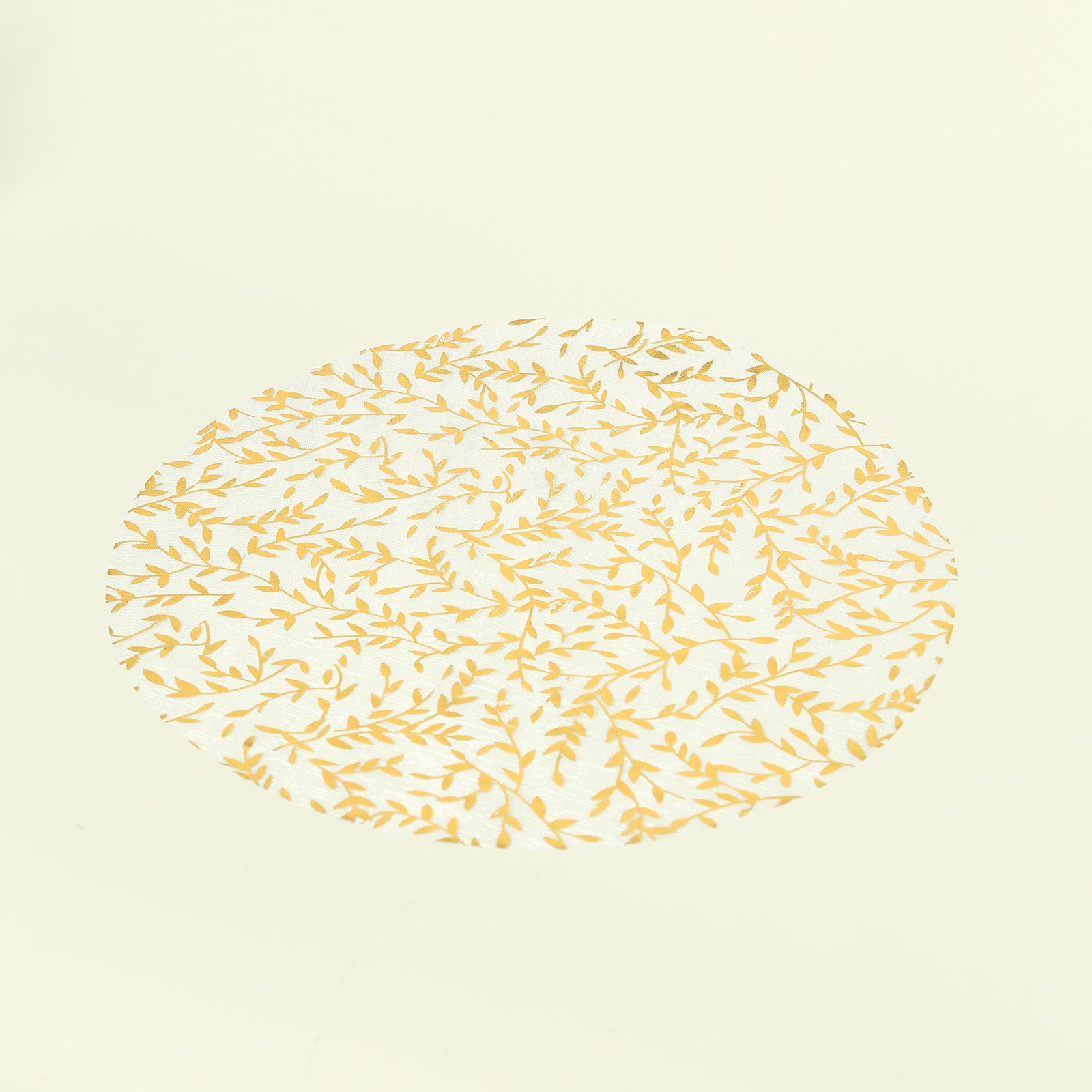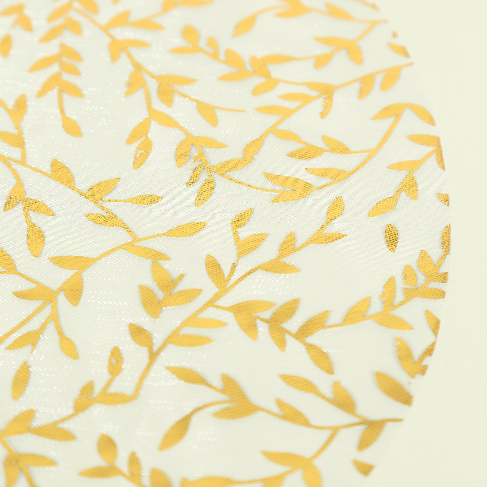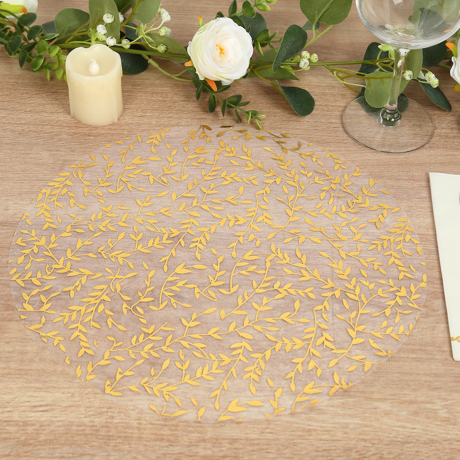 White Mesh Organza Round Placemats with Gold Foil Leaf Vines