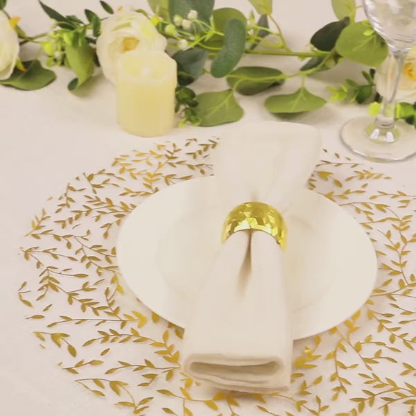 For a wedding or formal dinner, use these placemats to frame each place setting, creating an elegant foundation for fine china or disposable plates. The shimmering gold foil leaves can complement metallic accents in your centerpieces, while the translucent mesh allows the texture and color of your table linens to show through. You can also mix and match with different napkin styles to further enhance the look of your table.