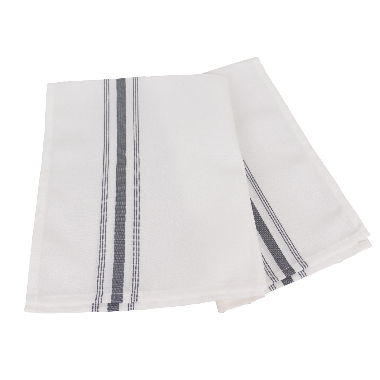10 Pack White Spun Polyester Cloth Napkins with Gray Reverse Stripes, Premium Restaurant Quality Bistro Napkins - 18"x22"