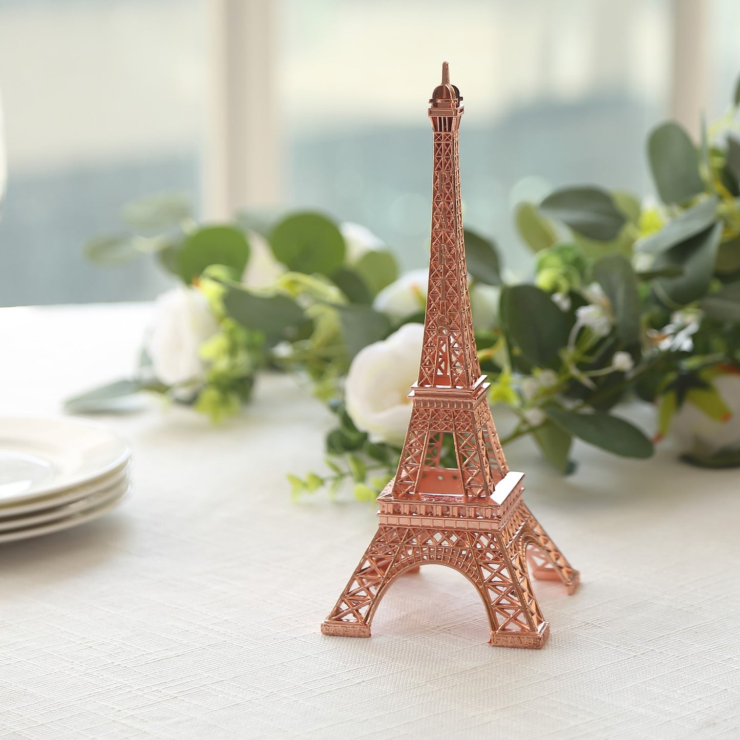 Their timeless appeal adds a sophisticated touch. The rose gold finish of the Eiffel Tower centerpiece complements various color schemes. It can seamlessly blend into any decor style.