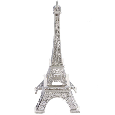 The 10" Silver Metal Eiffel Tower Table Centerpiece is a stunning piece. Its design captures the beauty of the iconic Eiffel Tower. Crafted from high-quality silver metal, it shines brilliantly under any lighting.