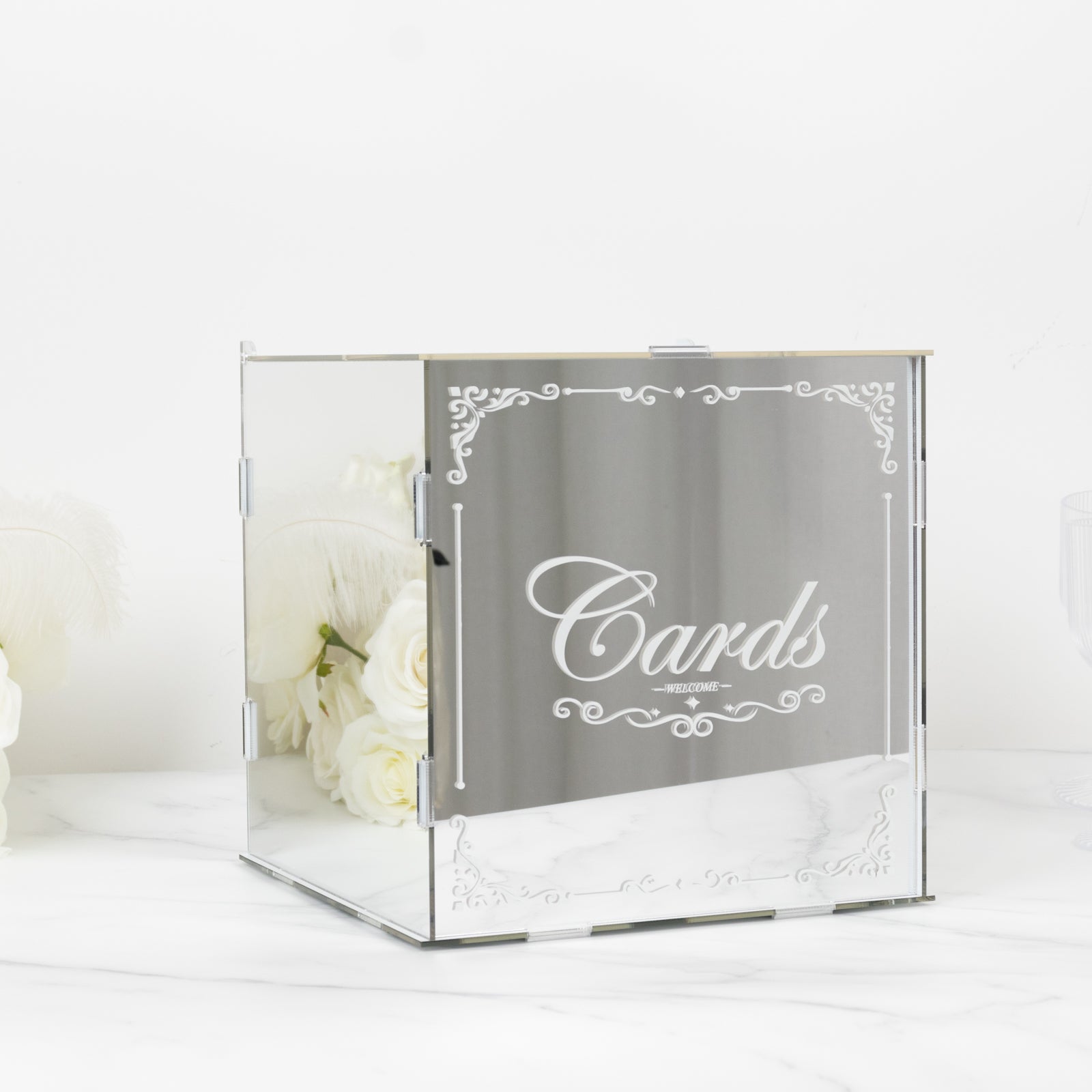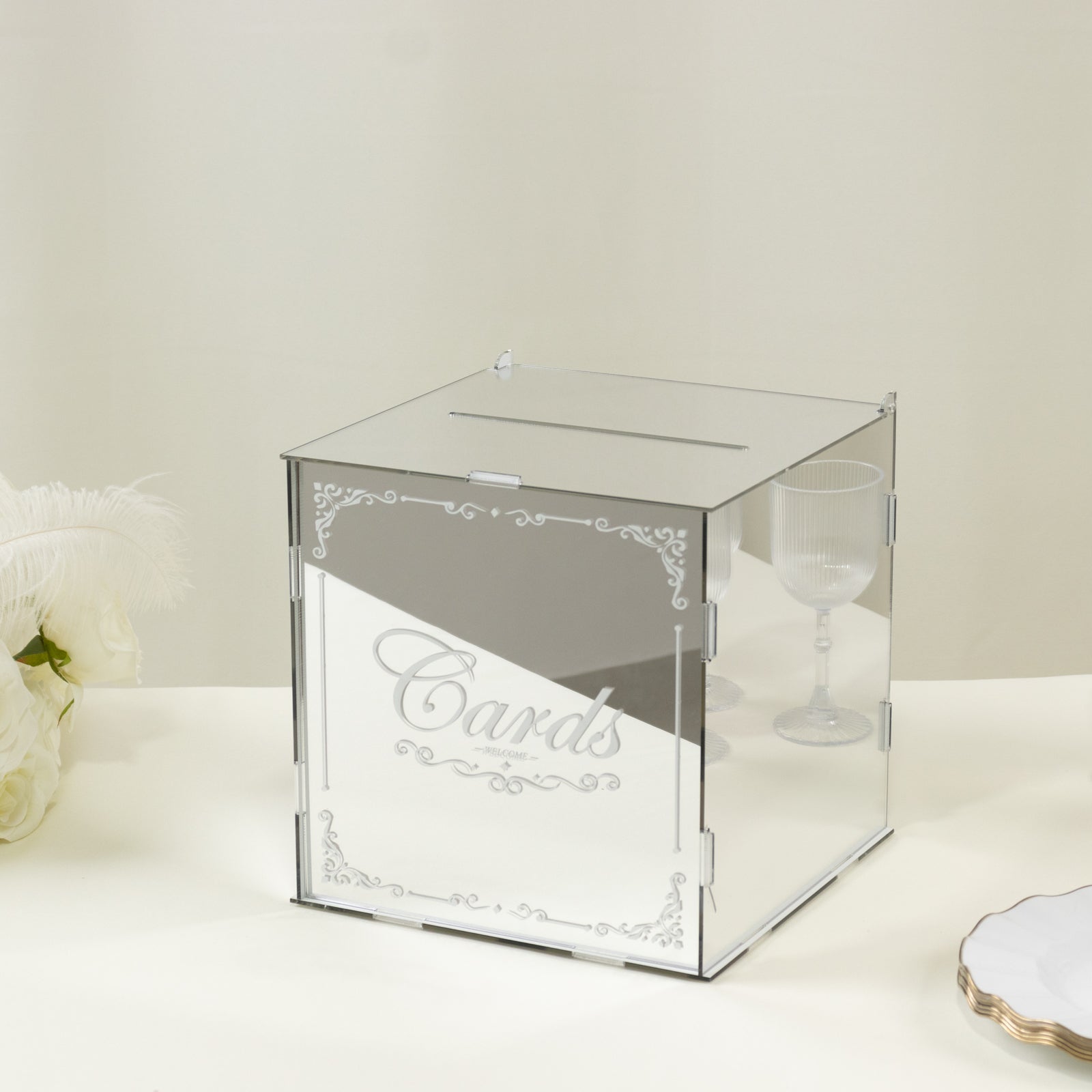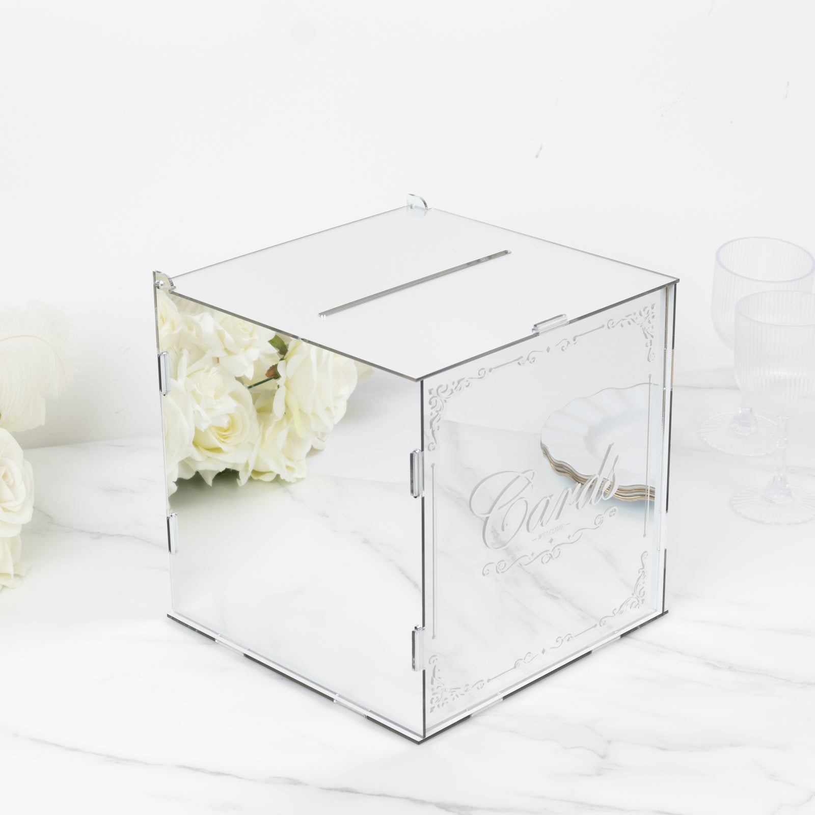 Designed with a shimmering silver mirror finish, this card box adds a touch of luxury while keeping cards and gifts secure. Its thoughtful slot design ensures easy access for guests to drop in their envelopes.