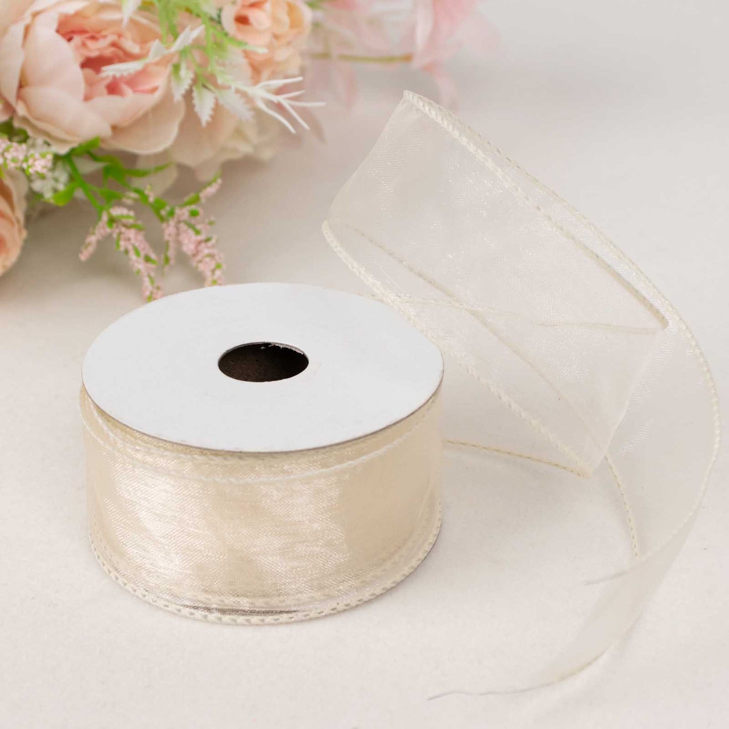 10 Yards 1.5" Ivory Organza Wired Edge Ribbon