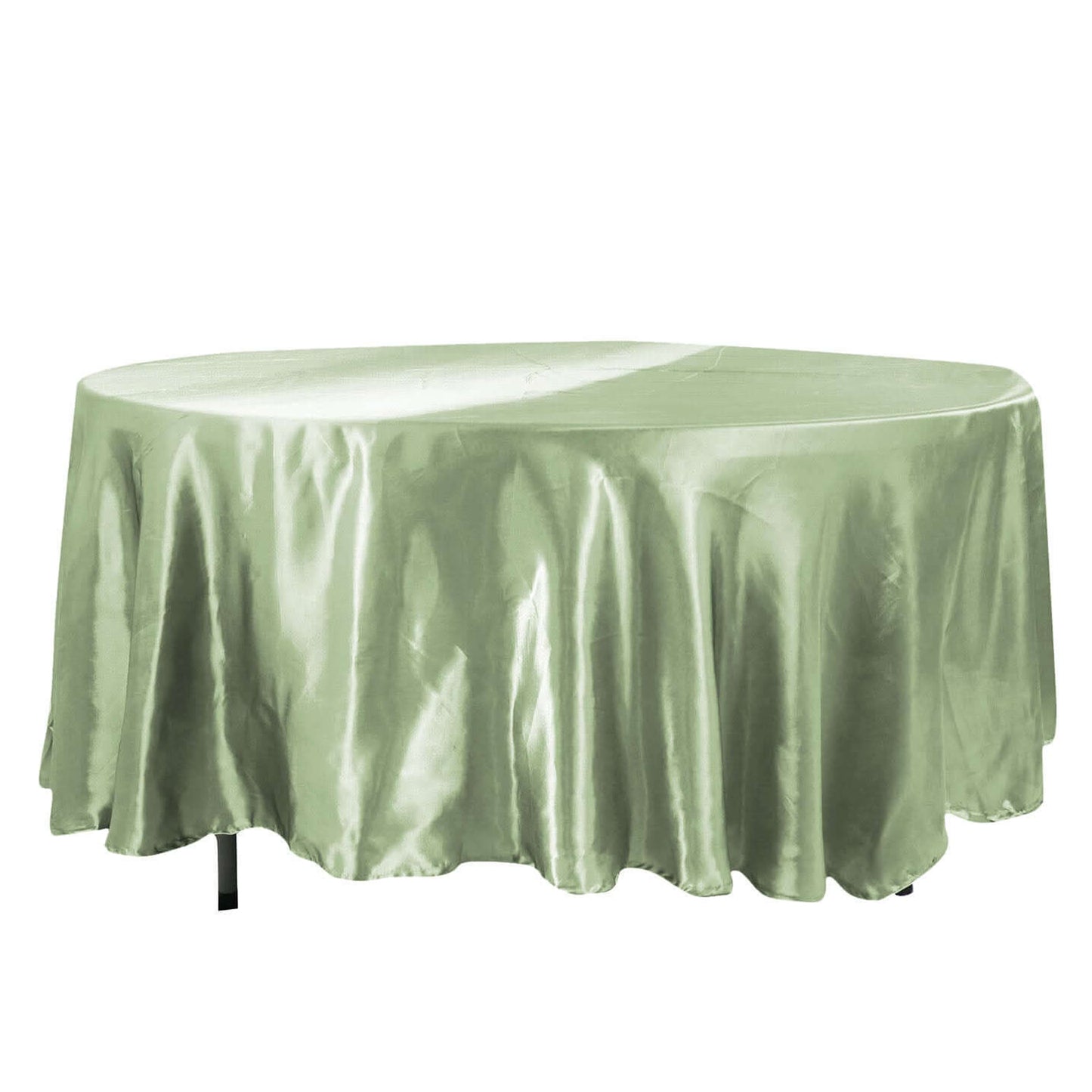 Transform your event with our 108" Sage Green Satin Round Tablecloth. This tablecloth adds elegance to any occasion. Its silky-smooth satin fabric creates a luxurious feel. Guests will be captivated by its charm and sophistication.
