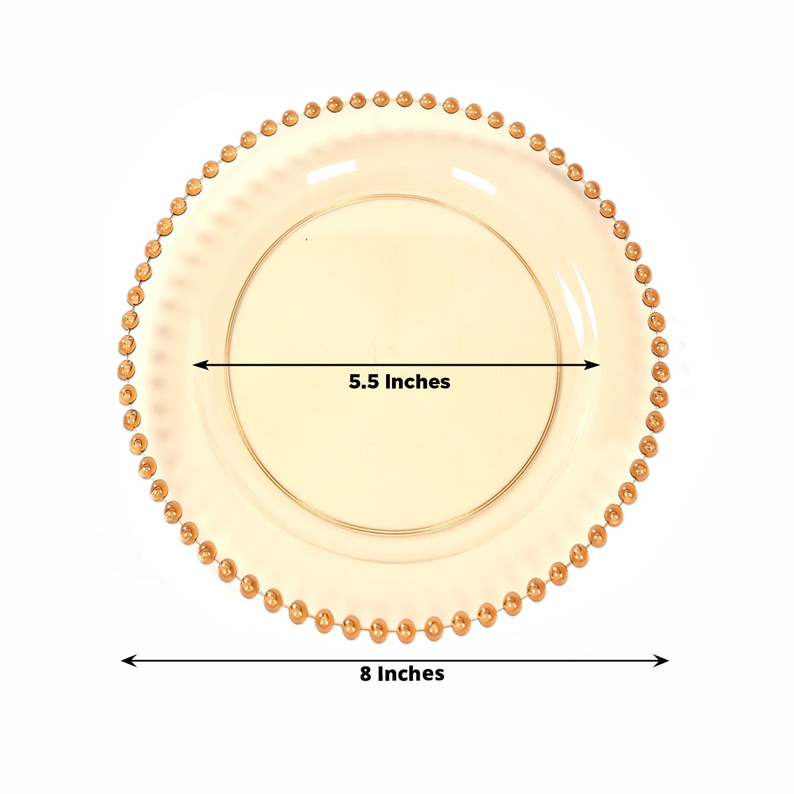 10-Pack Amber Gold Plastic Dessert Plates – 8" Round with Beaded Rim, Disposable for Parties & Events