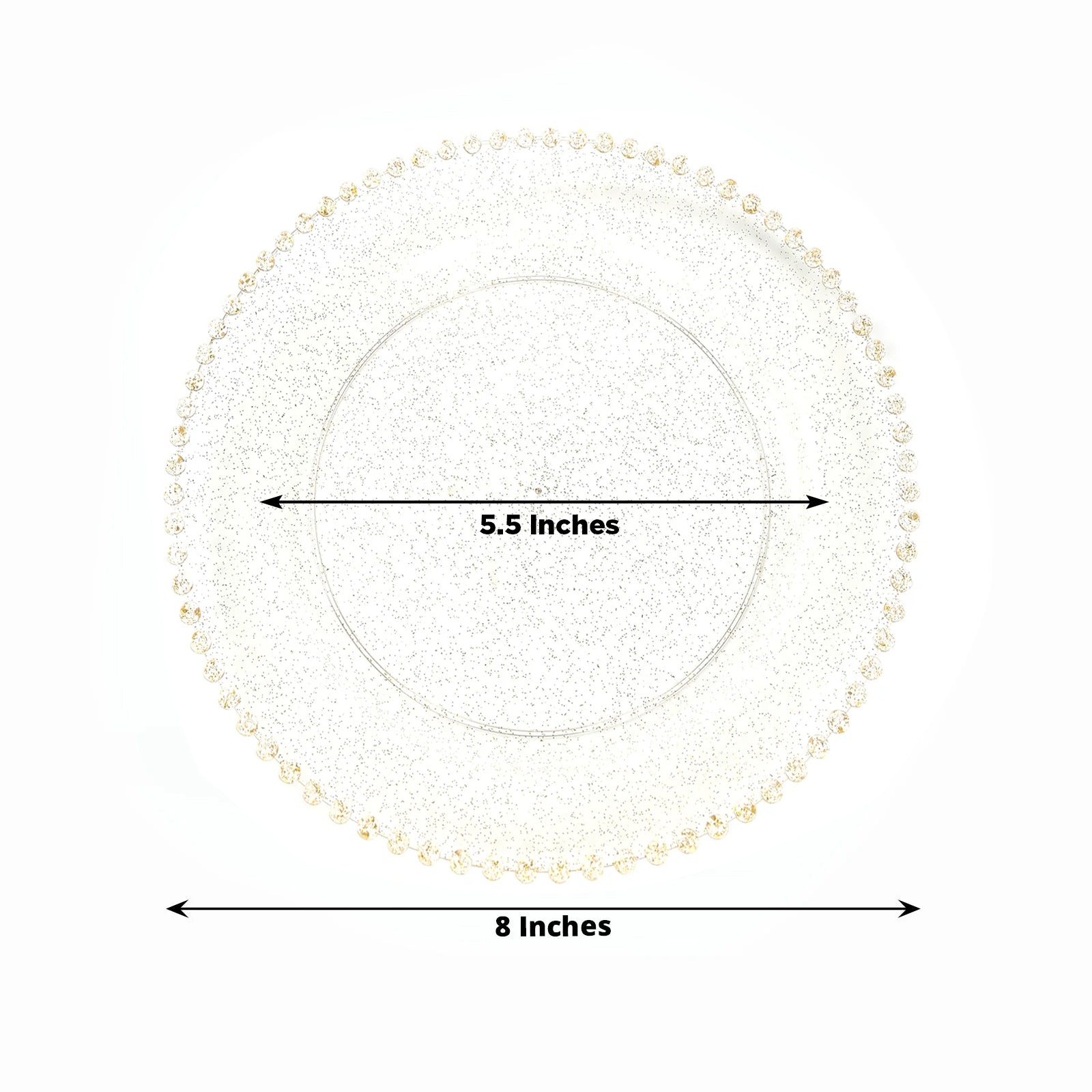 10-Pack Clear Gold Glittered Plastic Dessert Plates – 8" Round with Beaded Rim, Disposable for Parties & Events