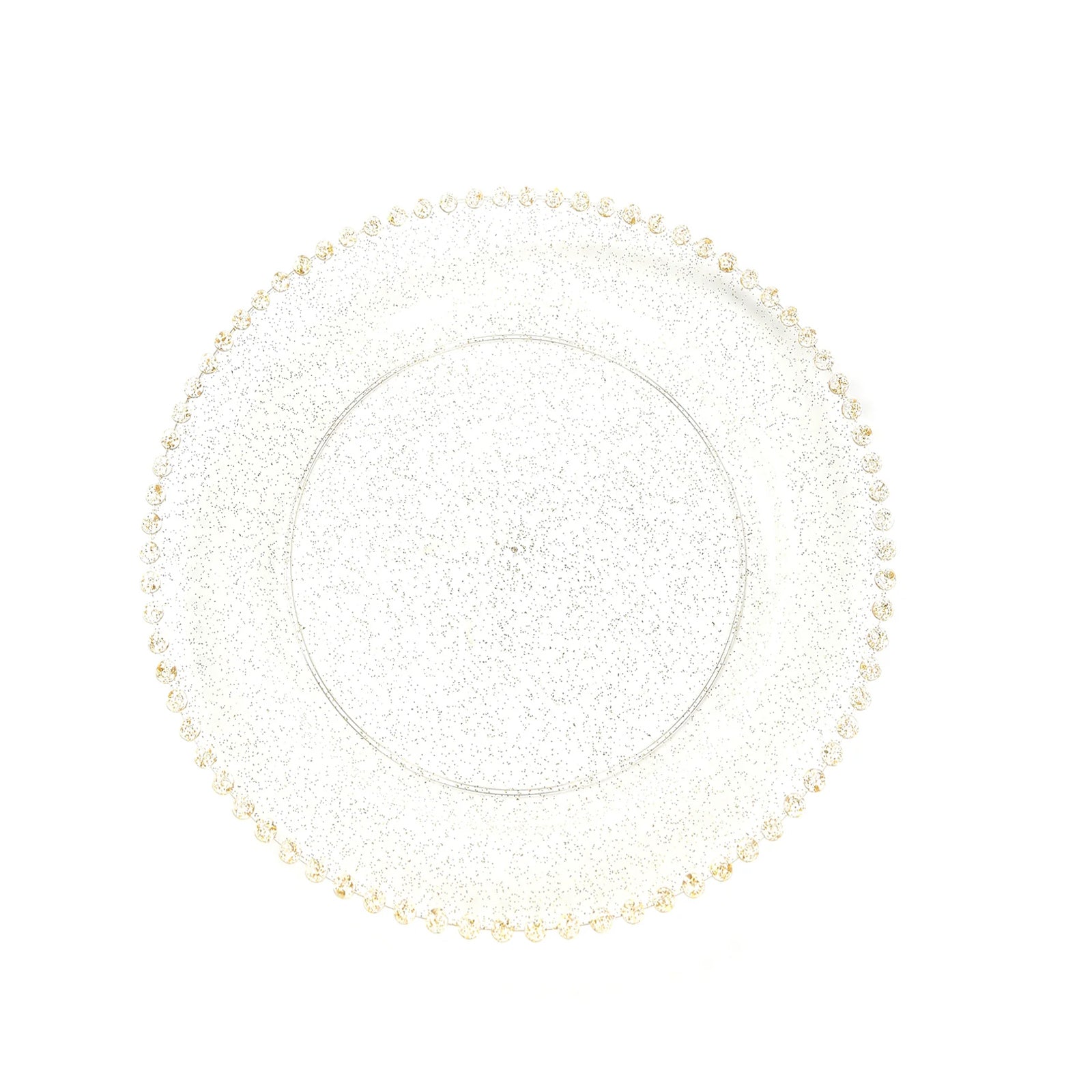 Clear Gold Glittered Dessert Plates with Gold Beaded Rim