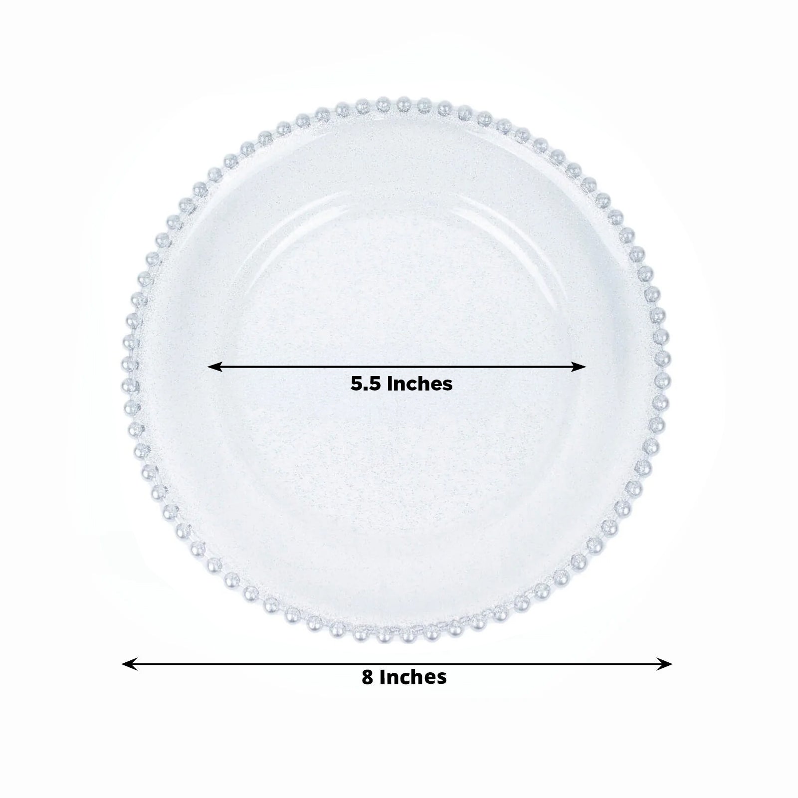Clear Silver Glittered Dessert Plates with Silver Beaded Rim