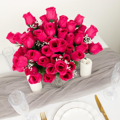 12 Bushes | Fuchsia Artificial Premium Silk Flower Rose Bud Bouquets
