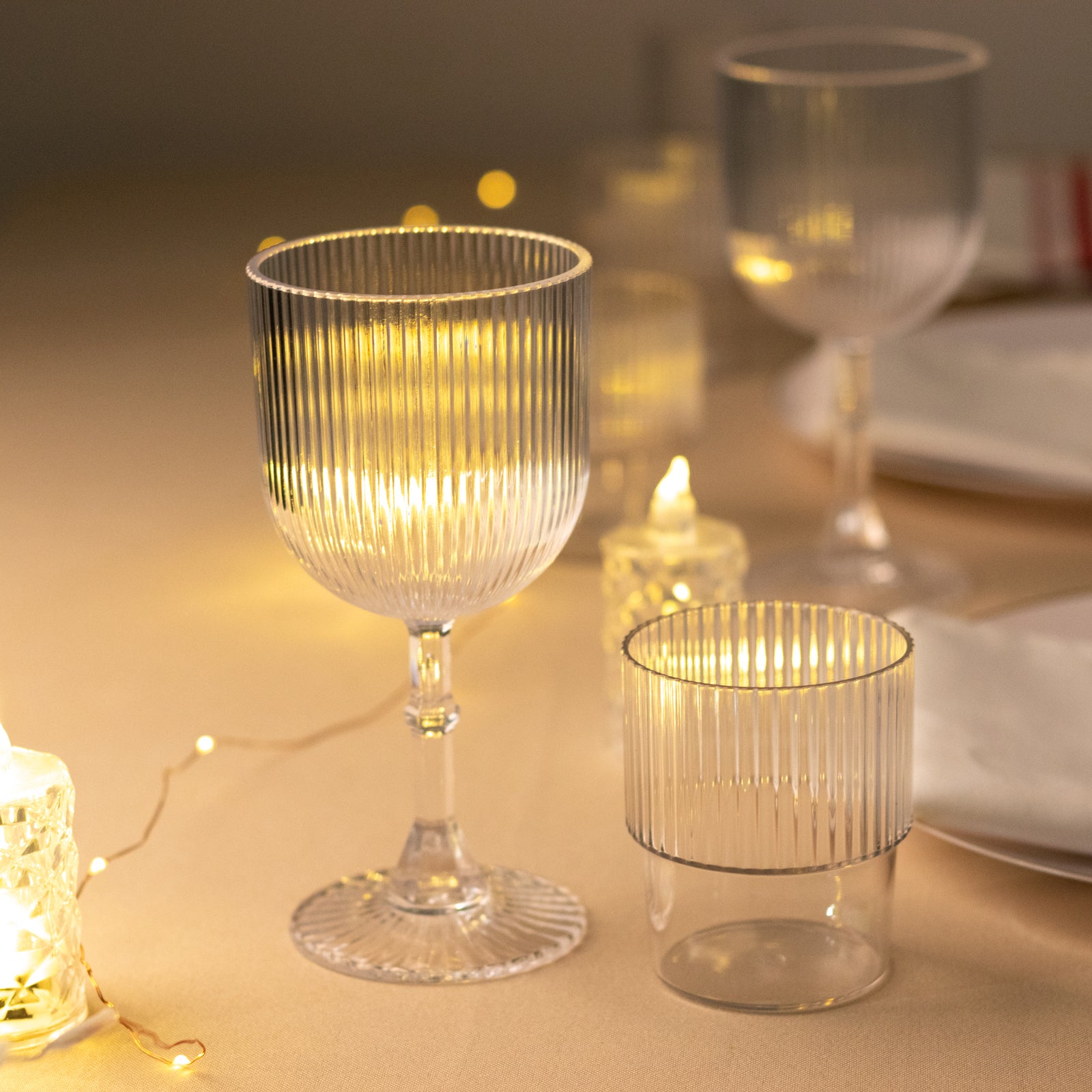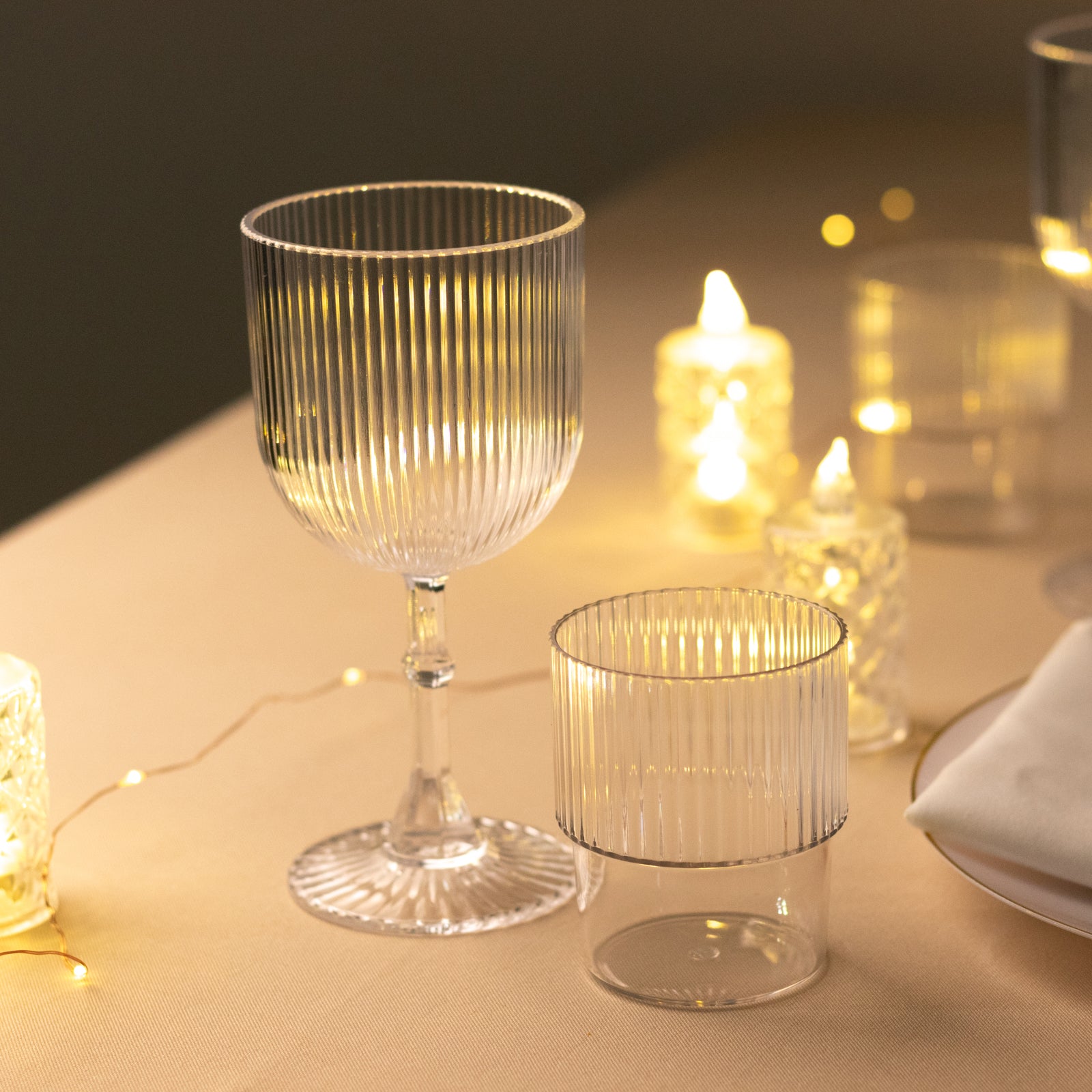 Beyond their durability, these tumblers are a cost-effective and eco-friendly choice. Instead of continuously purchasing disposable cups that contribute to waste, you can simply wash and reuse these tumblers for future events. Their unique ribbed design not only adds an aesthetic appeal but also provides a better grip, reducing the chances of accidental slips. It's a practical feature your guests will appreciate.