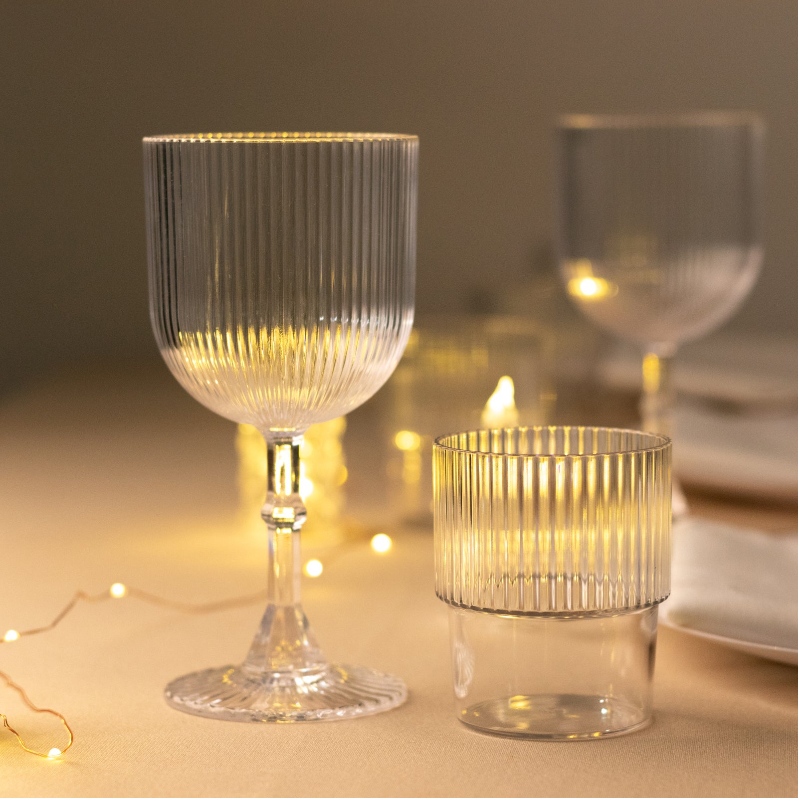Shatterproof and Reusable Clear Ribbed Plastic Tumblers