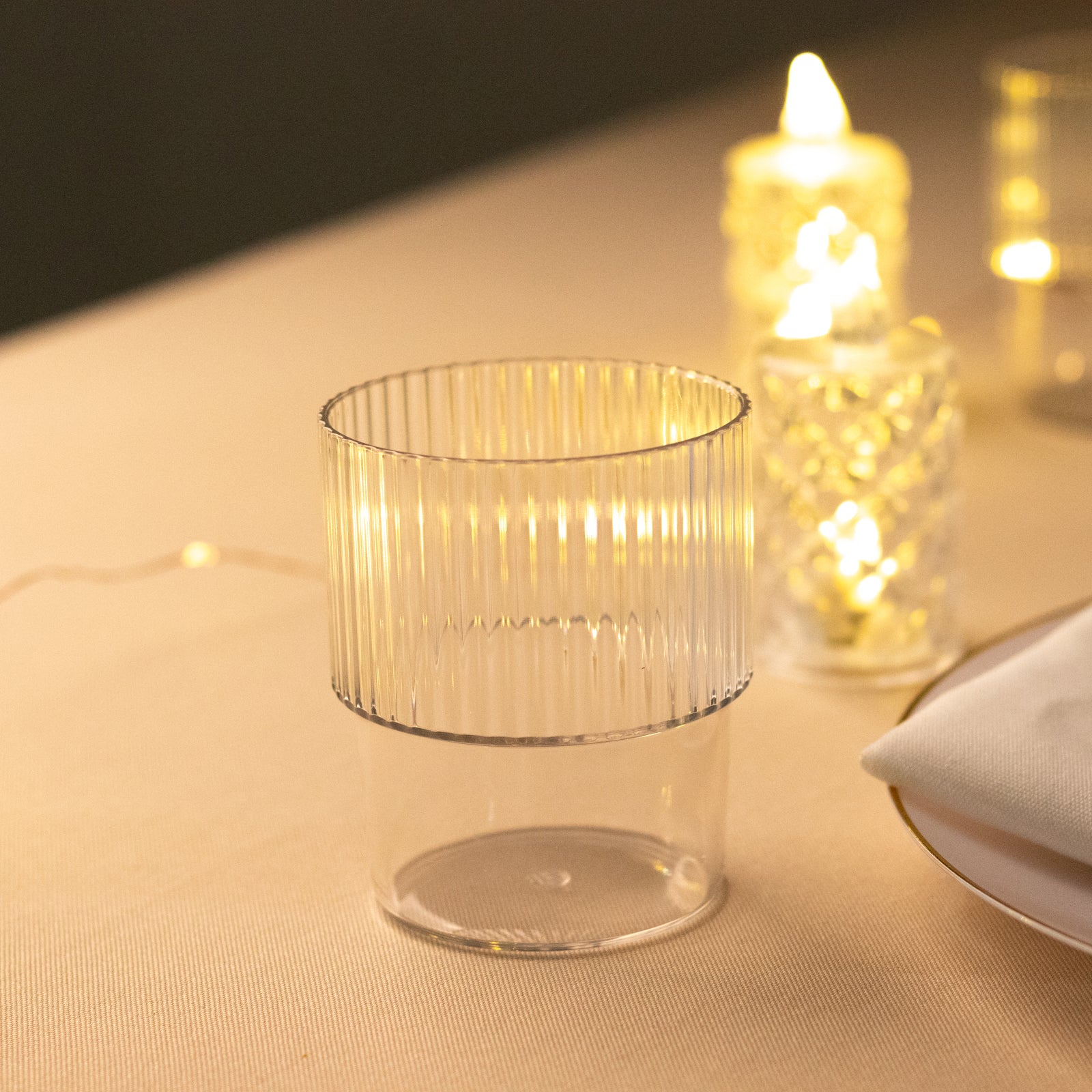 In event planning, it's often the small details that make the biggest impact. Incorporating Clear tumblers into your décor can elevate the entire look of your event. Their warm hue and unique ribbed design make them more than just functional items—they become decorative elements that enhance your theme.
