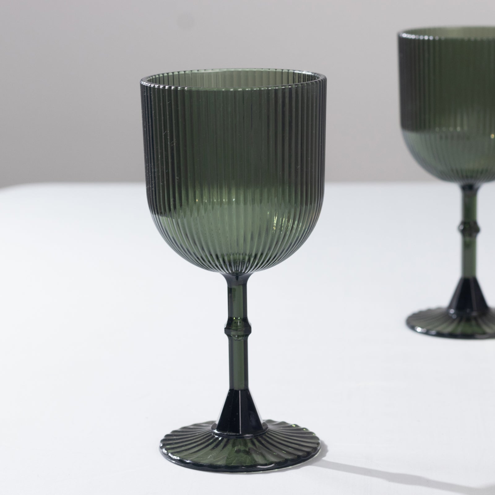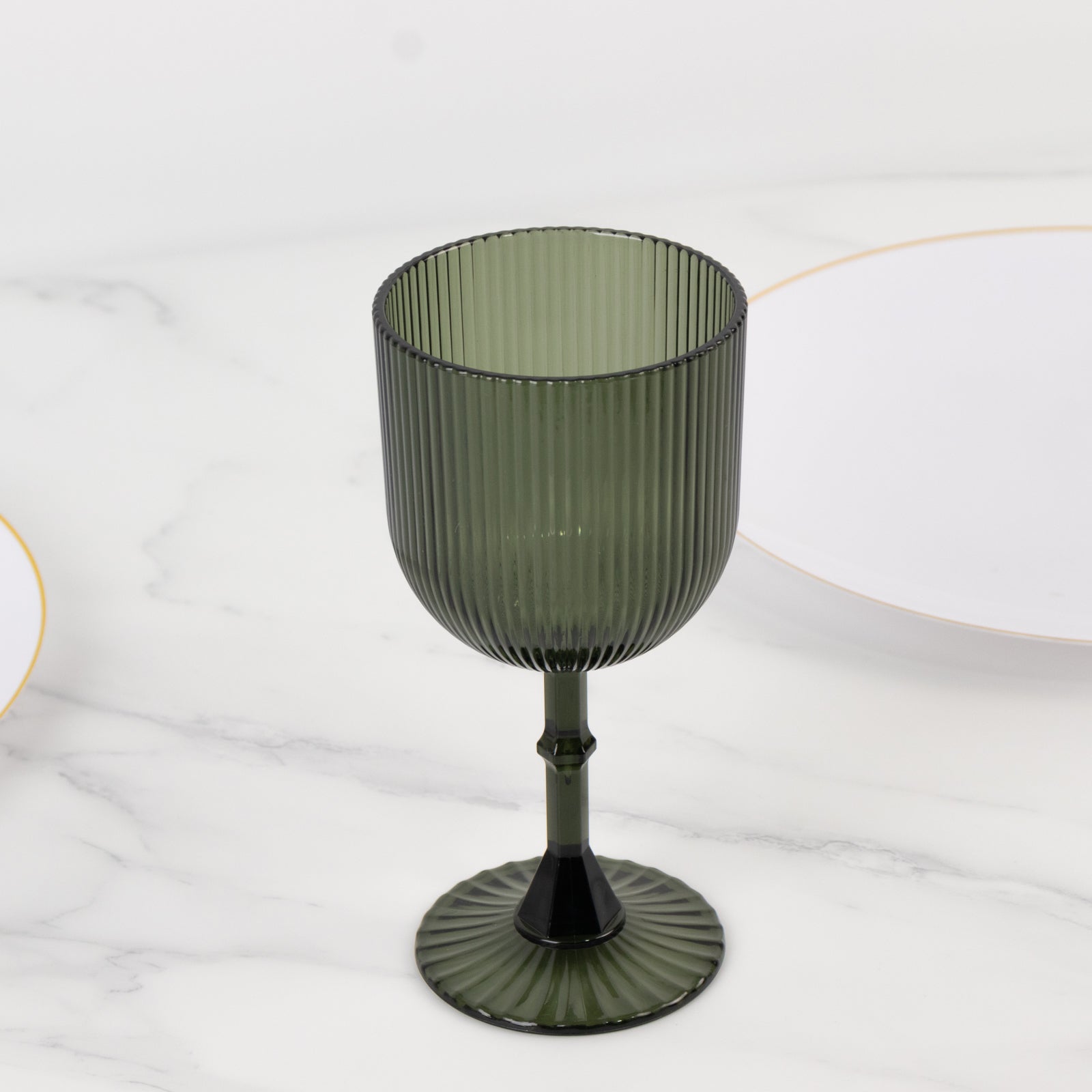Hunter Emerald Green Ribbed Reusable Plastic Wine Glasses