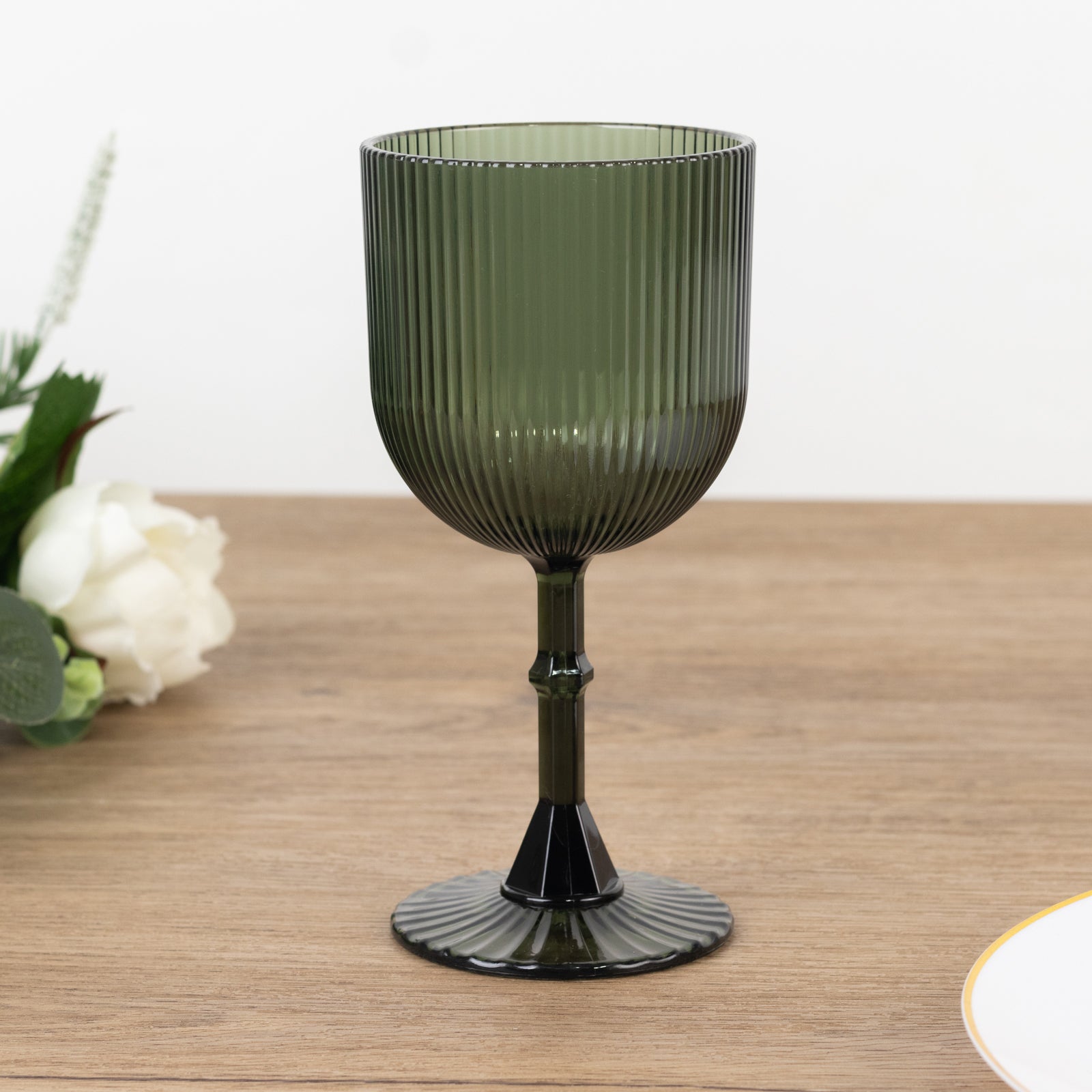 12 Pack Hunter Emerald Green Ribbed Reusable Plastic Wine Goblets, 9oz Shatterproof Vintage Drinking Glasses Water Goblets - 6.5"