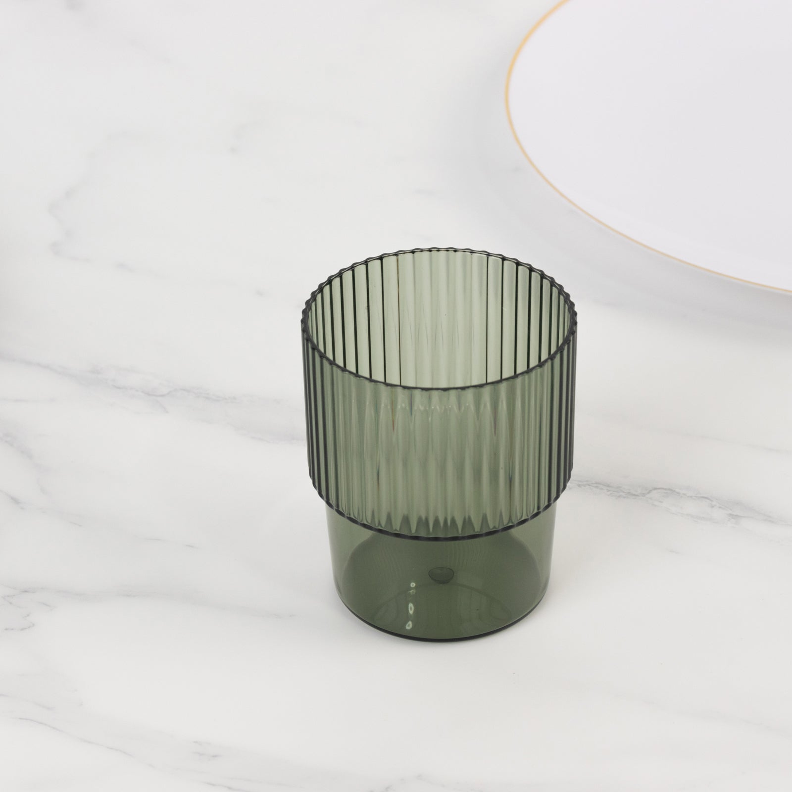 Their stackable feature makes them ideal for both storing and arranging on the table, freeing up precious table space for beautiful extras like floral vases and planters or tabletop centerpieces. Each tumbler is crafted for easy handling and serving, while the ribbed texture provides a comfortable grip. Picture your guests effortlessly reaching for these beautifully stacked tumblers, adding a unique, organized appeal to your tablescape.
