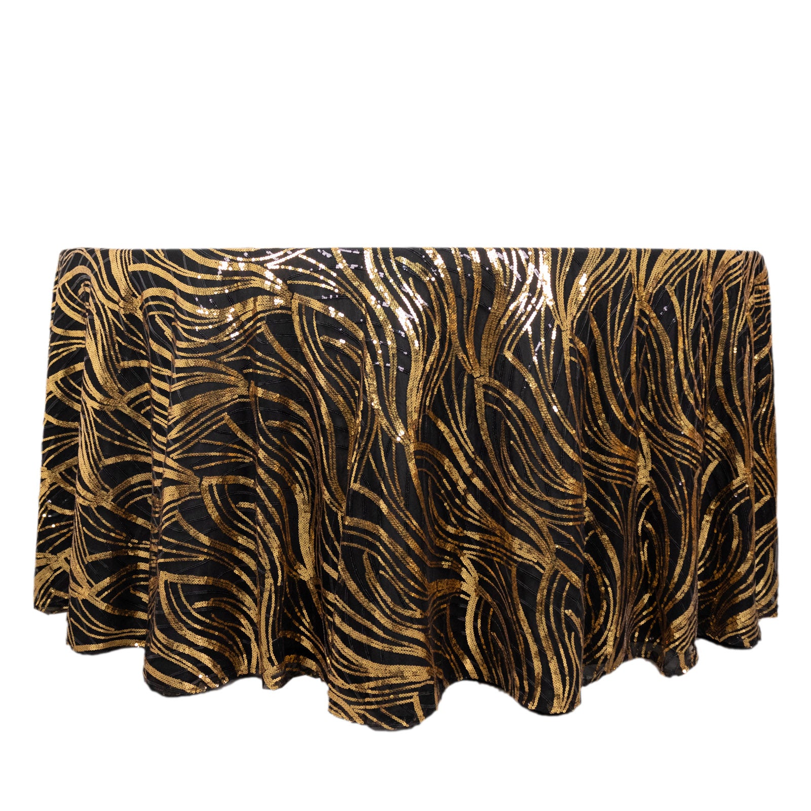 120" Black Gold Wave Mesh Round Tablecloth With Embroidered Sequins