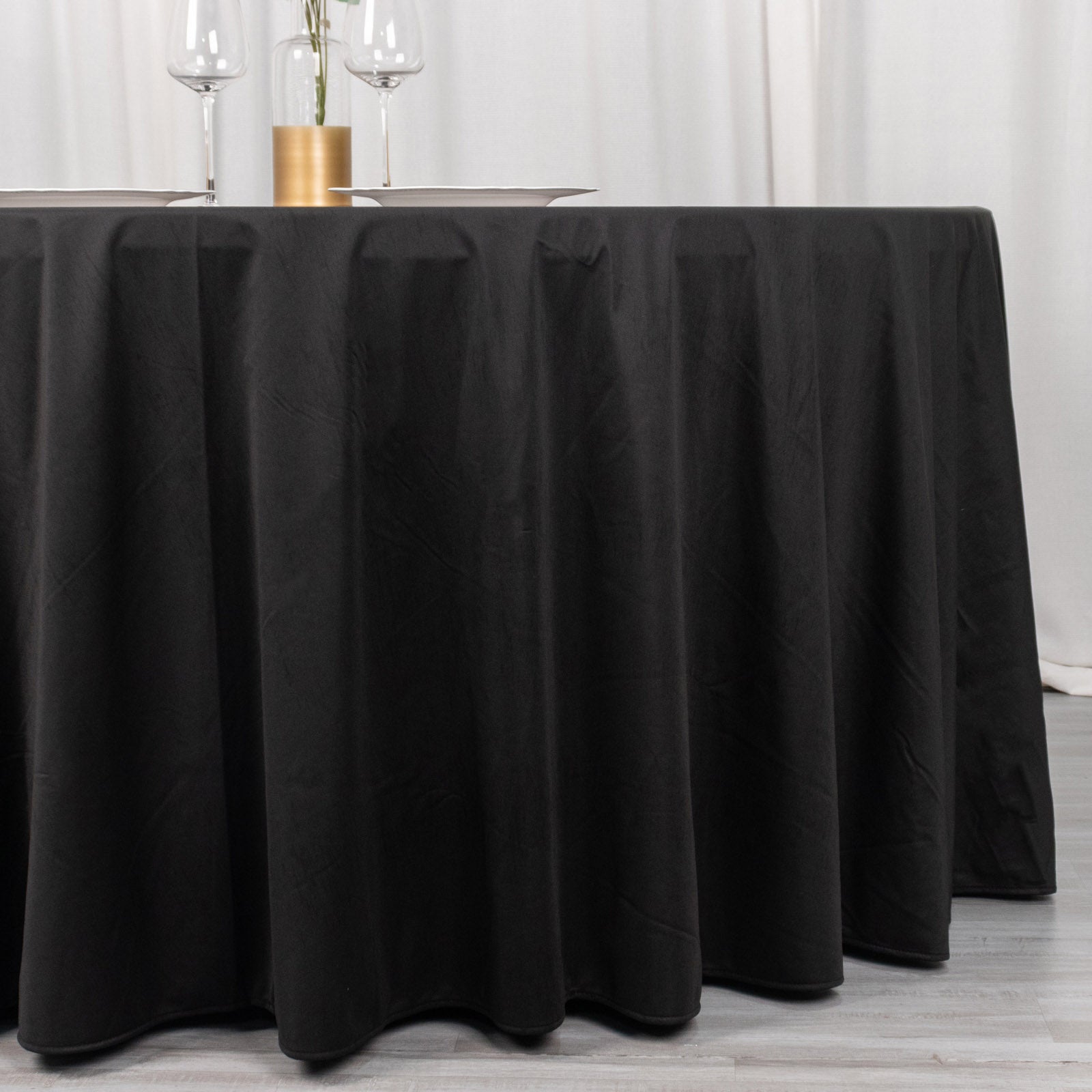 Our 120" Black Premium Scuba Wrinkle Free Round Tablecloth is a game changer. Its seamless design creates a smooth, uninterrupted surface that enhances the elegance of any table setting. This feature is especially important for formal events where every detail matters. A flawless tablecloth sets the stage for an unforgettable dining experience.
