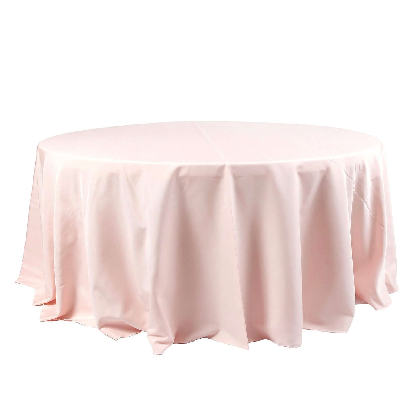 The Blush Seamless Polyester Round Tablecloth is perfect for a variety of events. Its generous 120-inch size fits large round tables, making it a staple for banquets and receptions. This tablecloth adapts to any setting effortlessly.