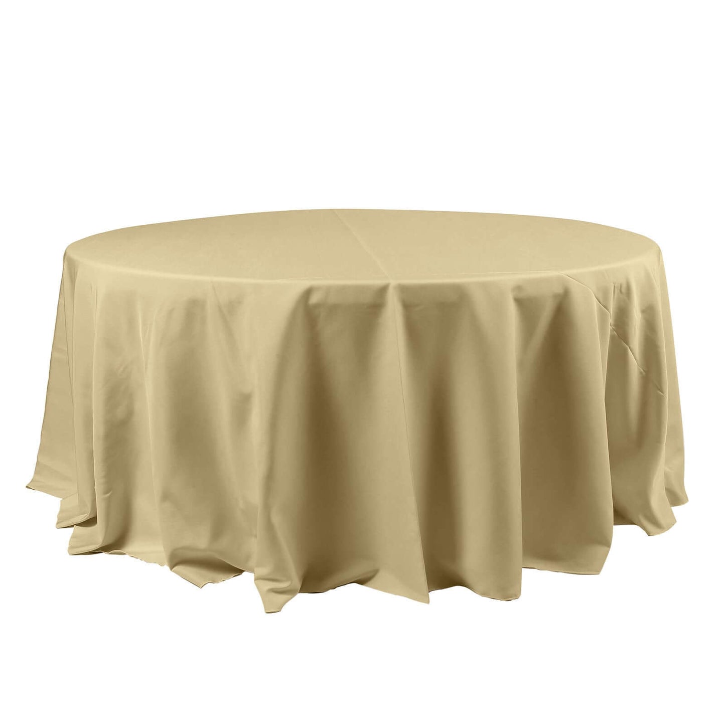 The 120" Champagne Seamless Tablecloths is made from high-grade polyester. This premium material ensures durability and longevity. You can trust it to withstand extensive use without losing its charm.