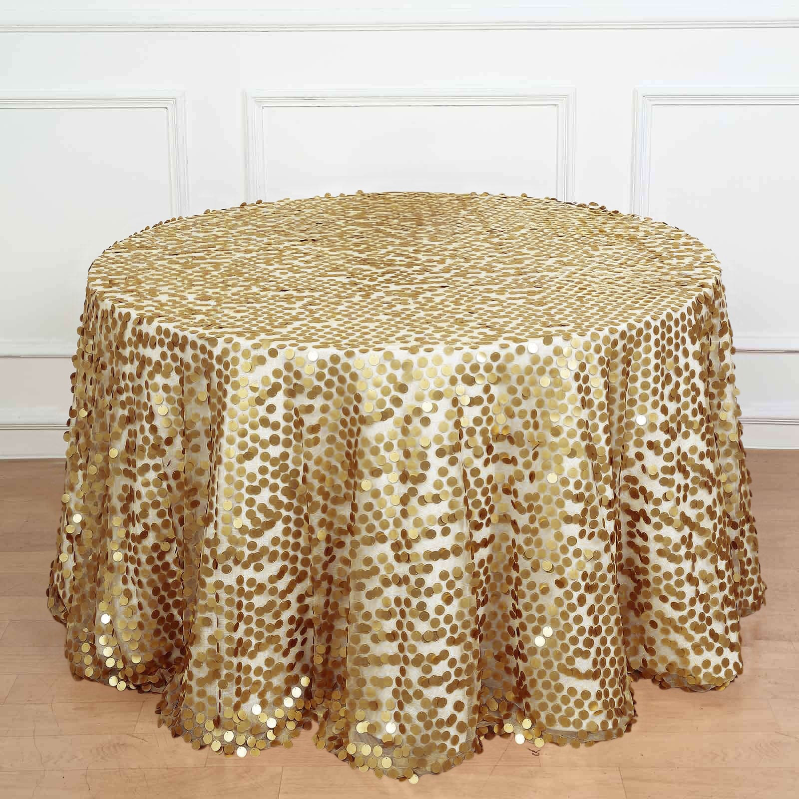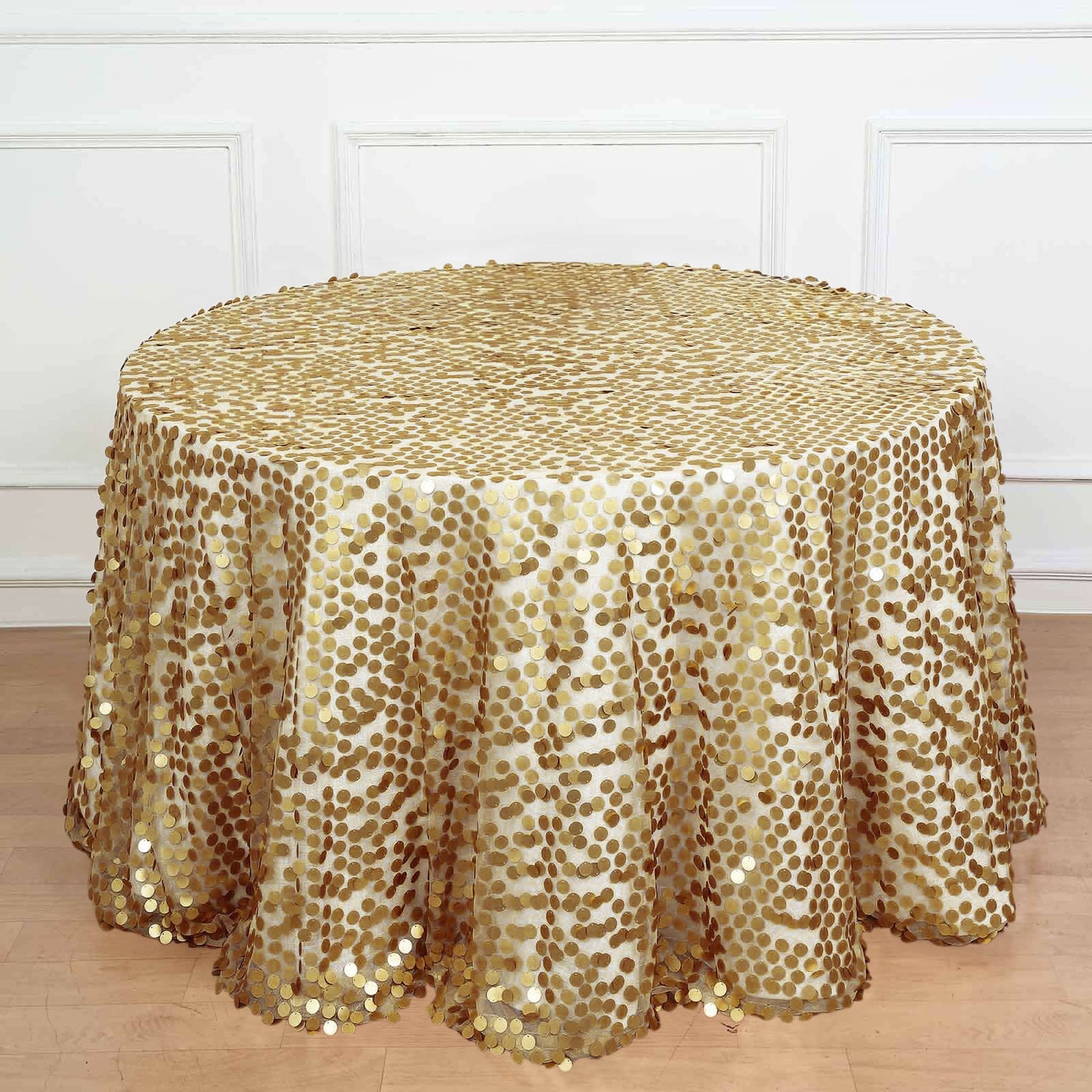 120" Champagne Seamless Big Payette Sequin Round Tablecloth Collection