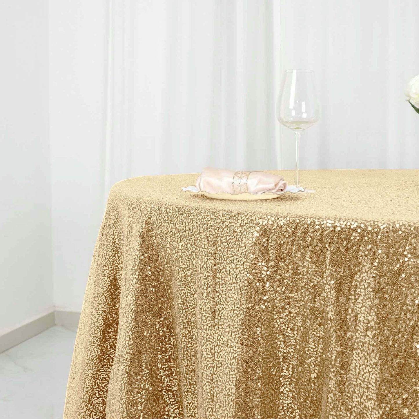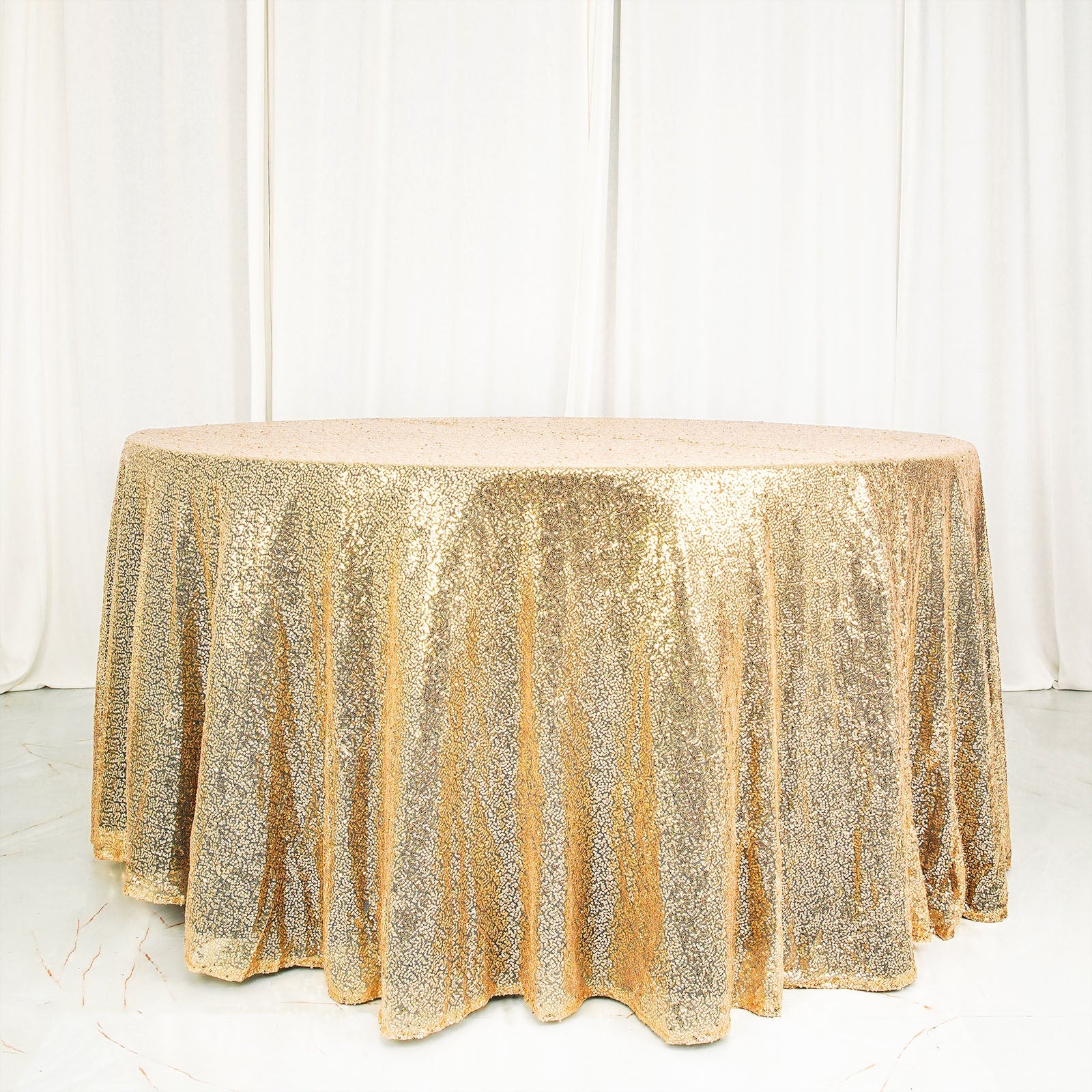 The Champagne Seamless Sequin Tablecloth is the epitome of versatility. Its 120-inch size makes it perfect for large round tables, providing a stunning backdrop for any event. Whether you're planning a wedding, birthday party, or corporate gathering, this tablecloth fits seamlessly into any décor theme.