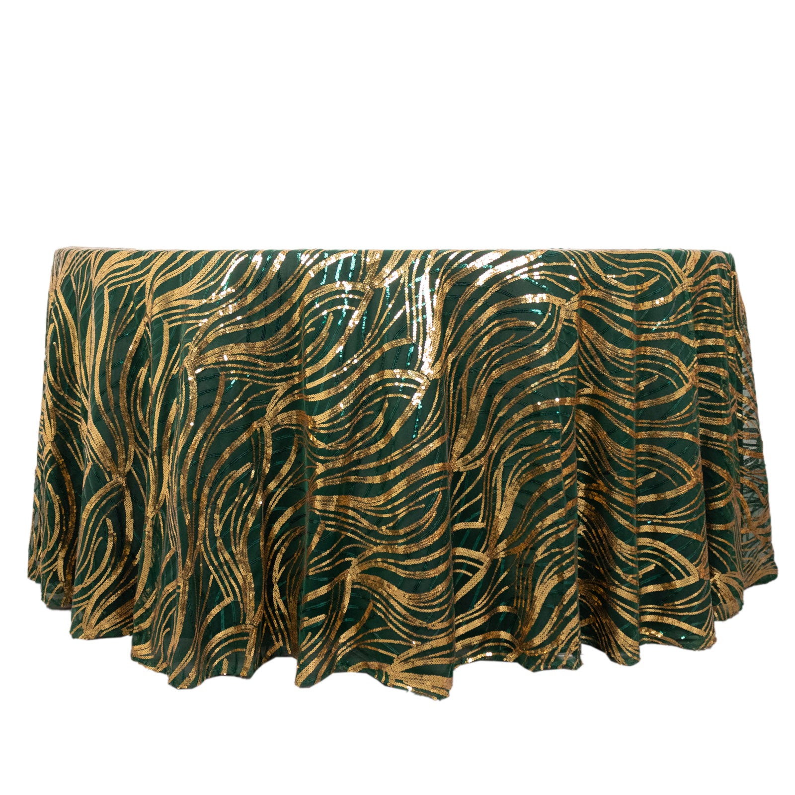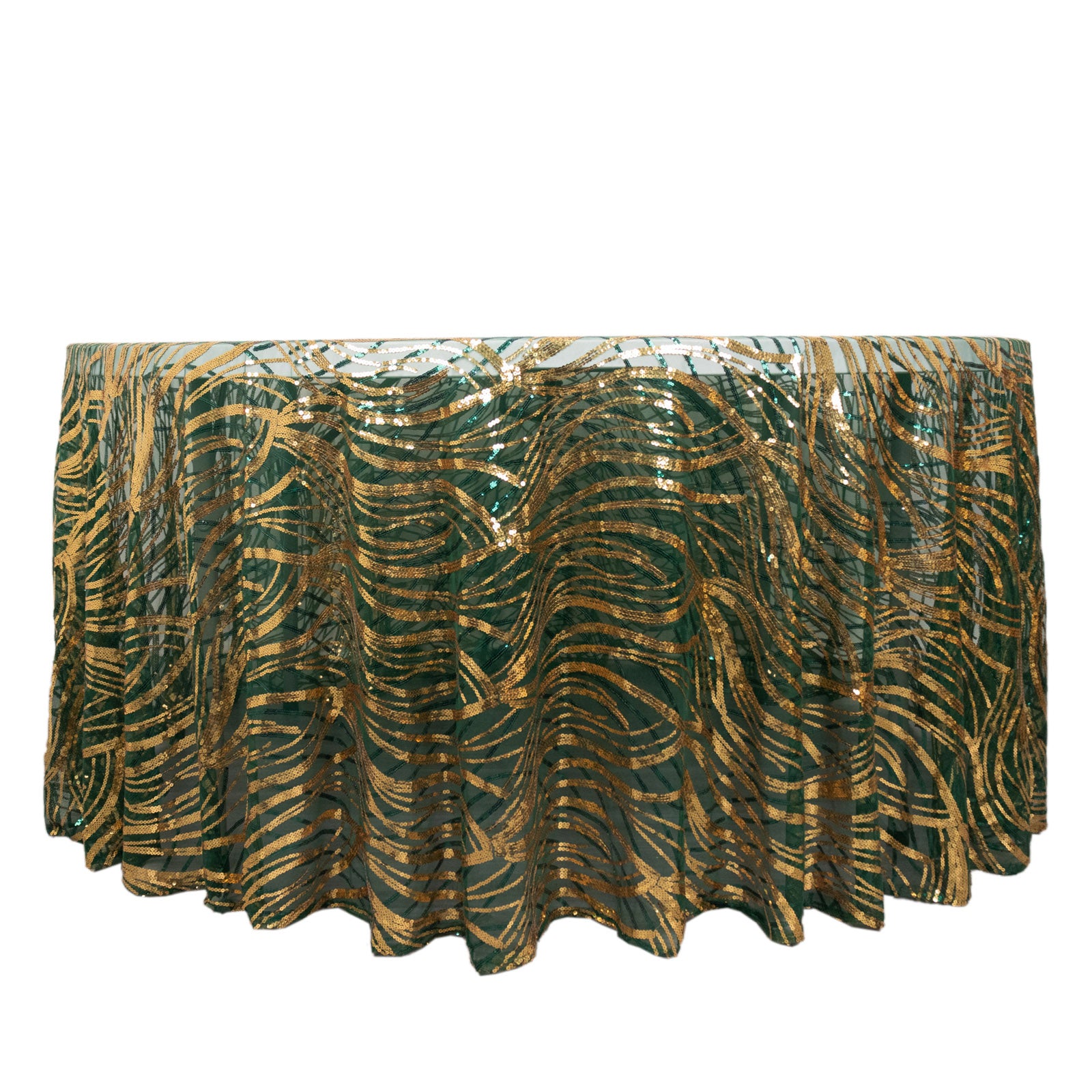 120" Hunter Emerald Green Gold Wave Mesh Round Tablecloth With Embroidered Sequins
