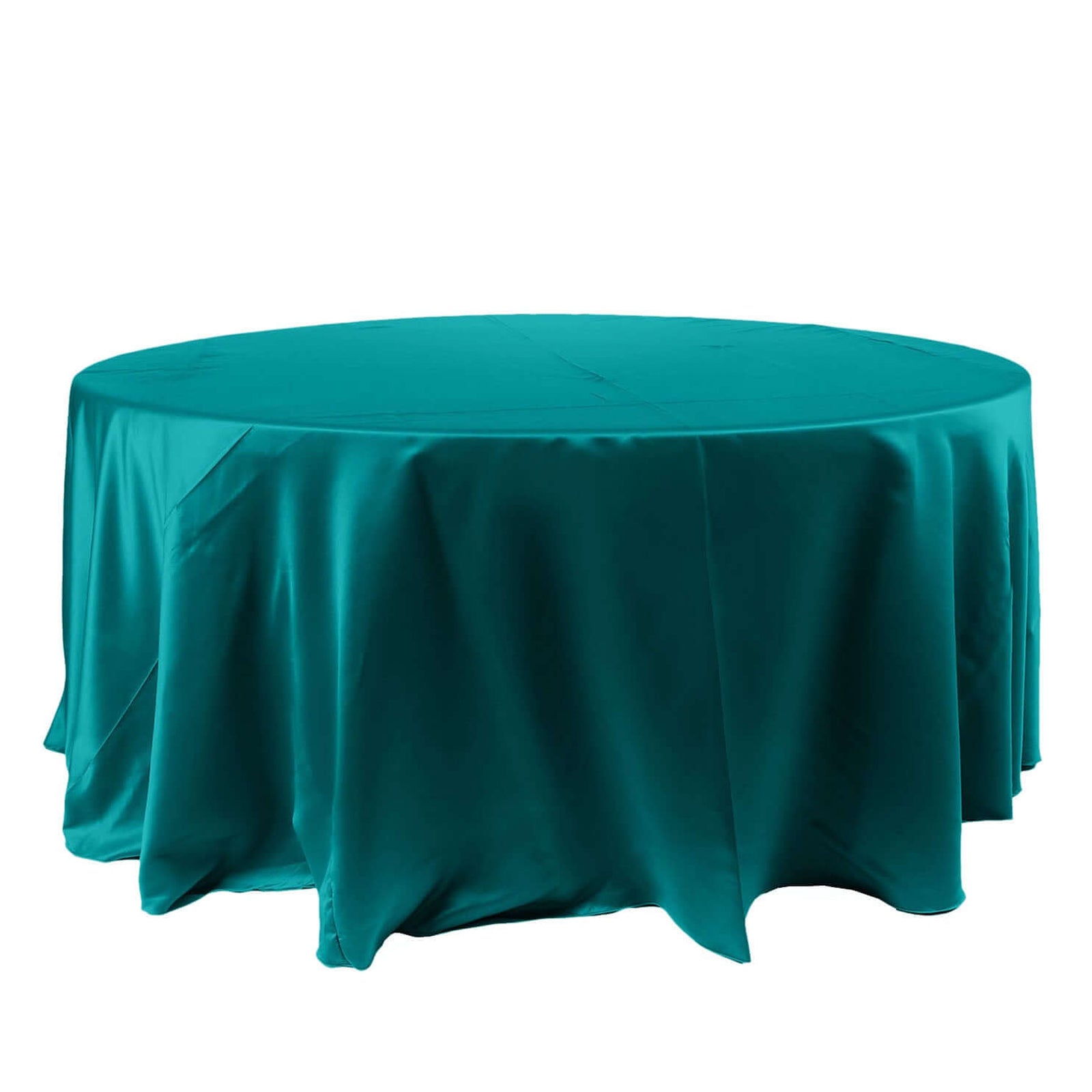 The 120" Hunter Emerald Green Seamless Satin Round Tablecloth offers a luxurious satin finish. This tablecloth transforms any table into a stunning centerpiece. Its smooth texture enhances the visual appeal, creating an elegant atmosphere for your event.