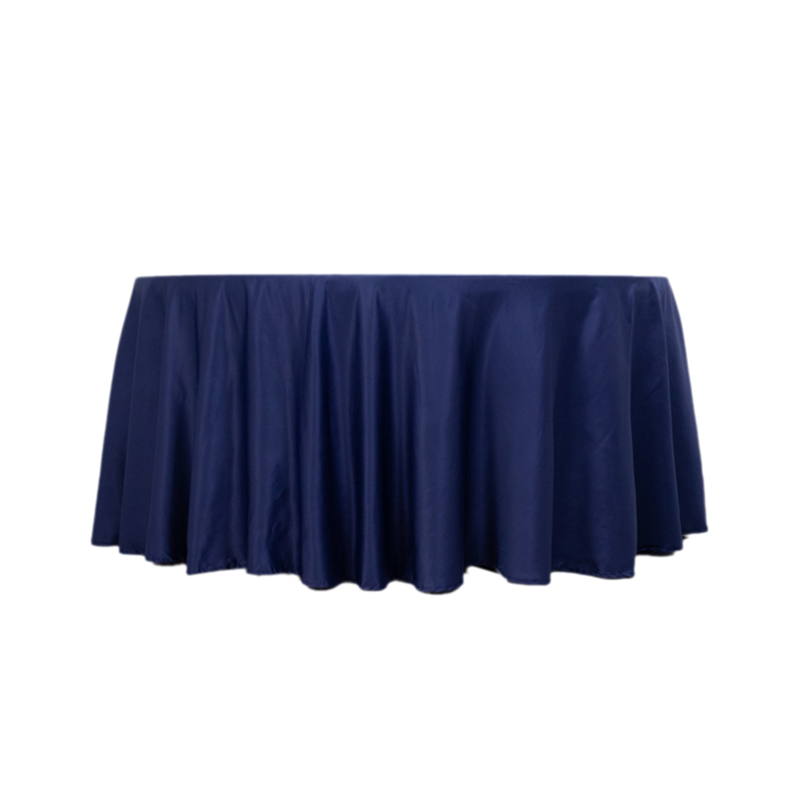 Stunning Navy Blue Lamour Satin Round Tablecloth 120”