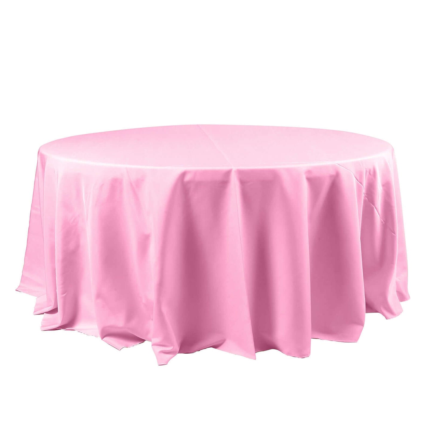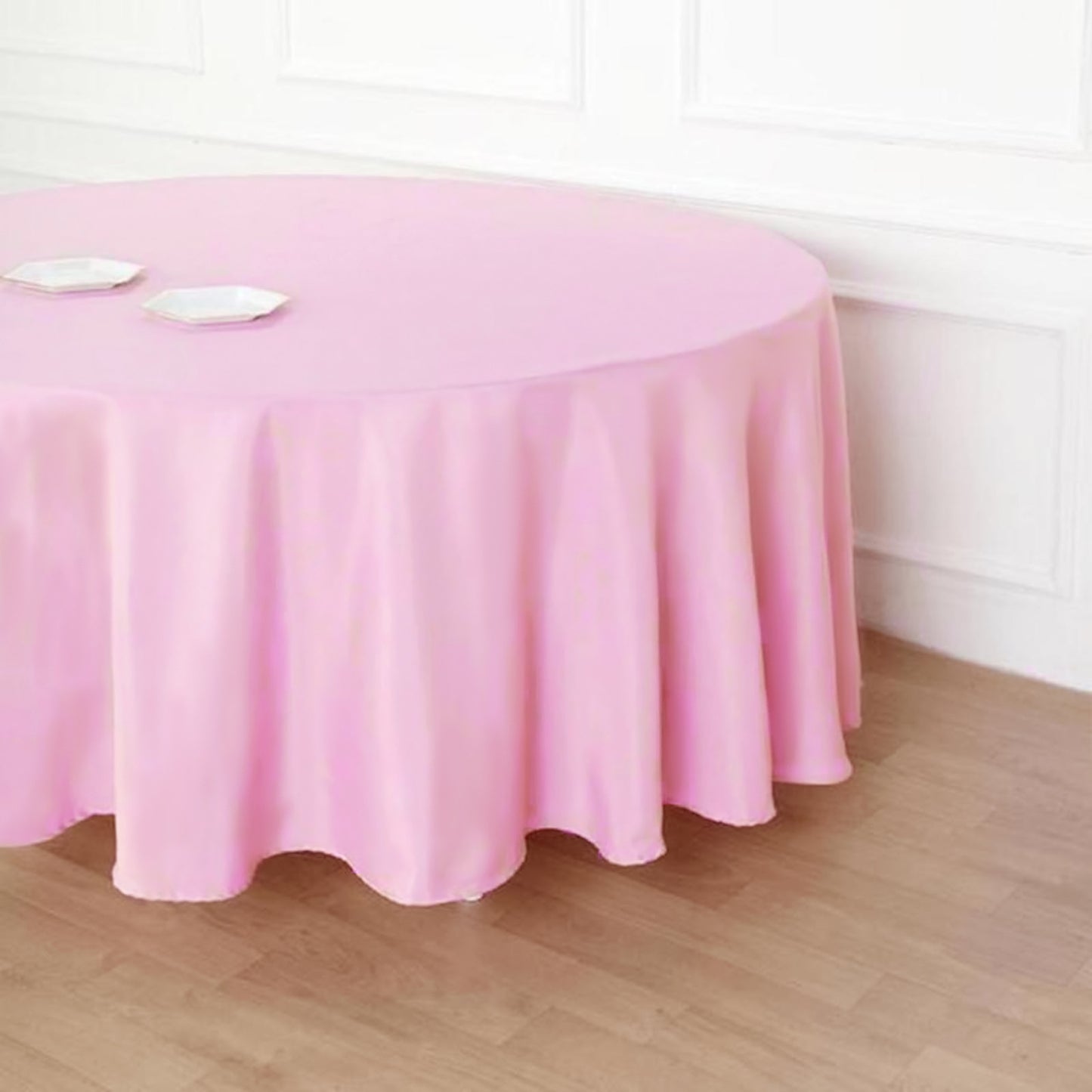 The generous size of the 120" Pink Seamless Polyester Round Tablecloth makes it incredibly versatile. It is designed for round tables but can also drape beautifully over rectangular and square tables. This adaptability allows you to use it in various settings.