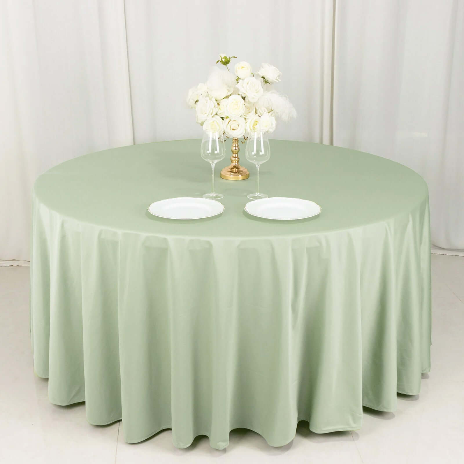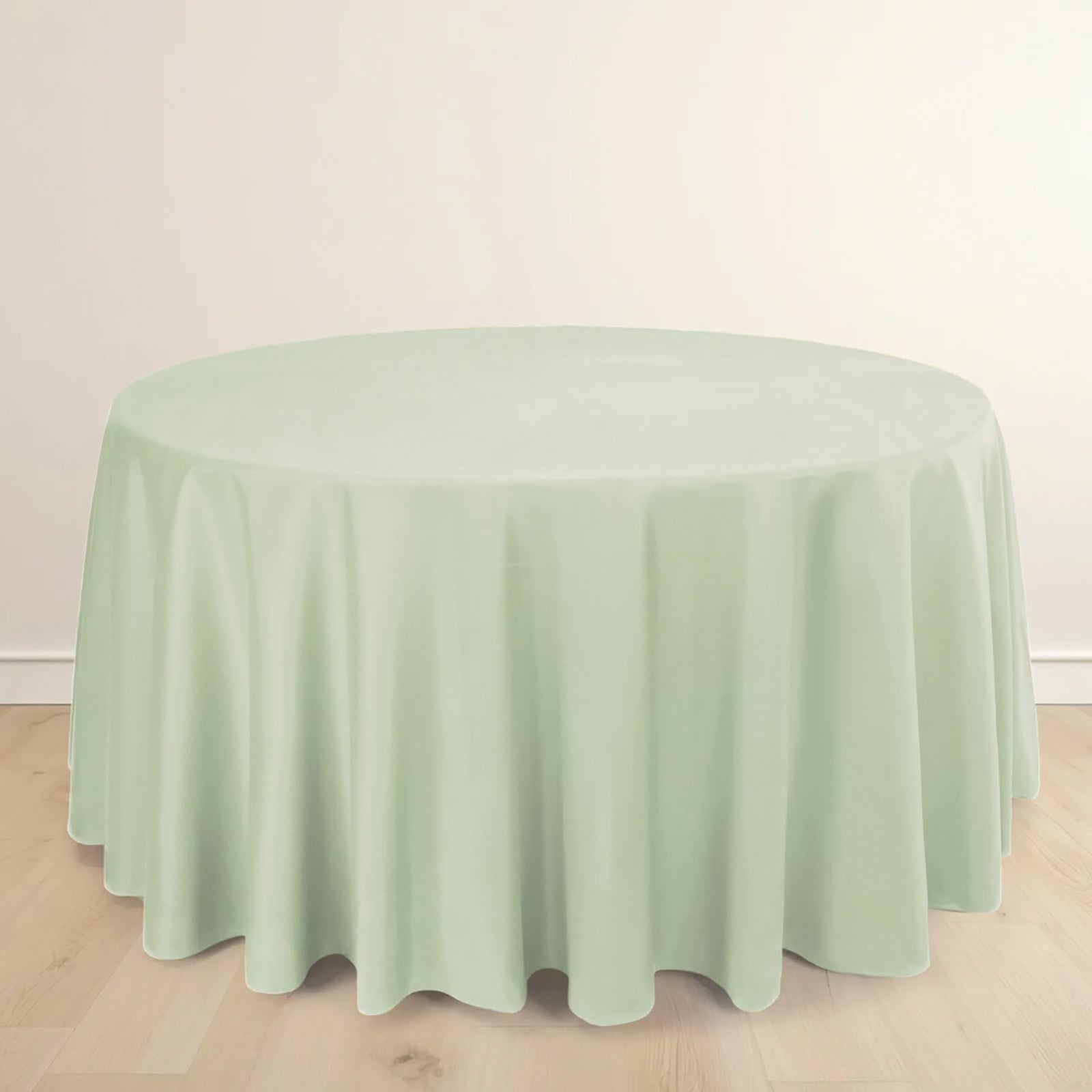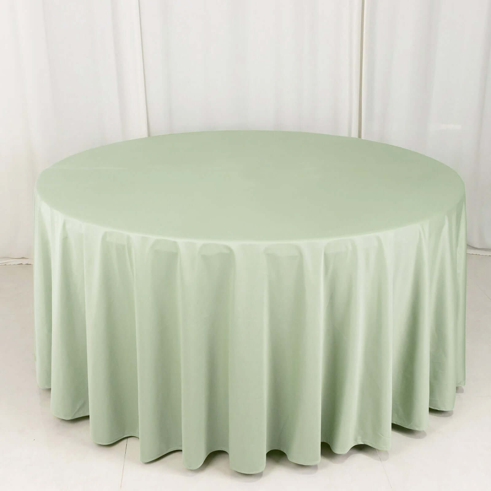 120" Sage Green Scuba Wrinkle Free Round Tablecloth, Seamless Scuba Polyester Tablecloth