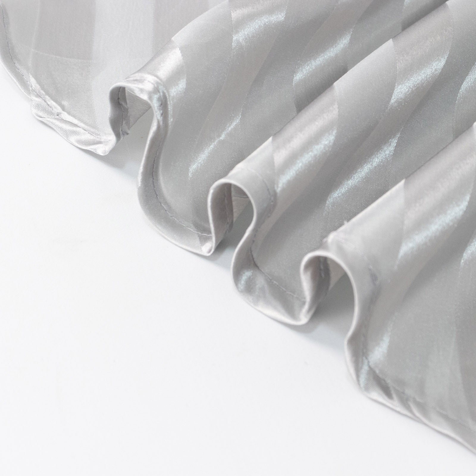 The seamless design of the Silver Satin Stripe Tablecloth is a game-changer. It ensures a smooth, flawless appearance on your tables. This creates an elegant look without any distracting seams.