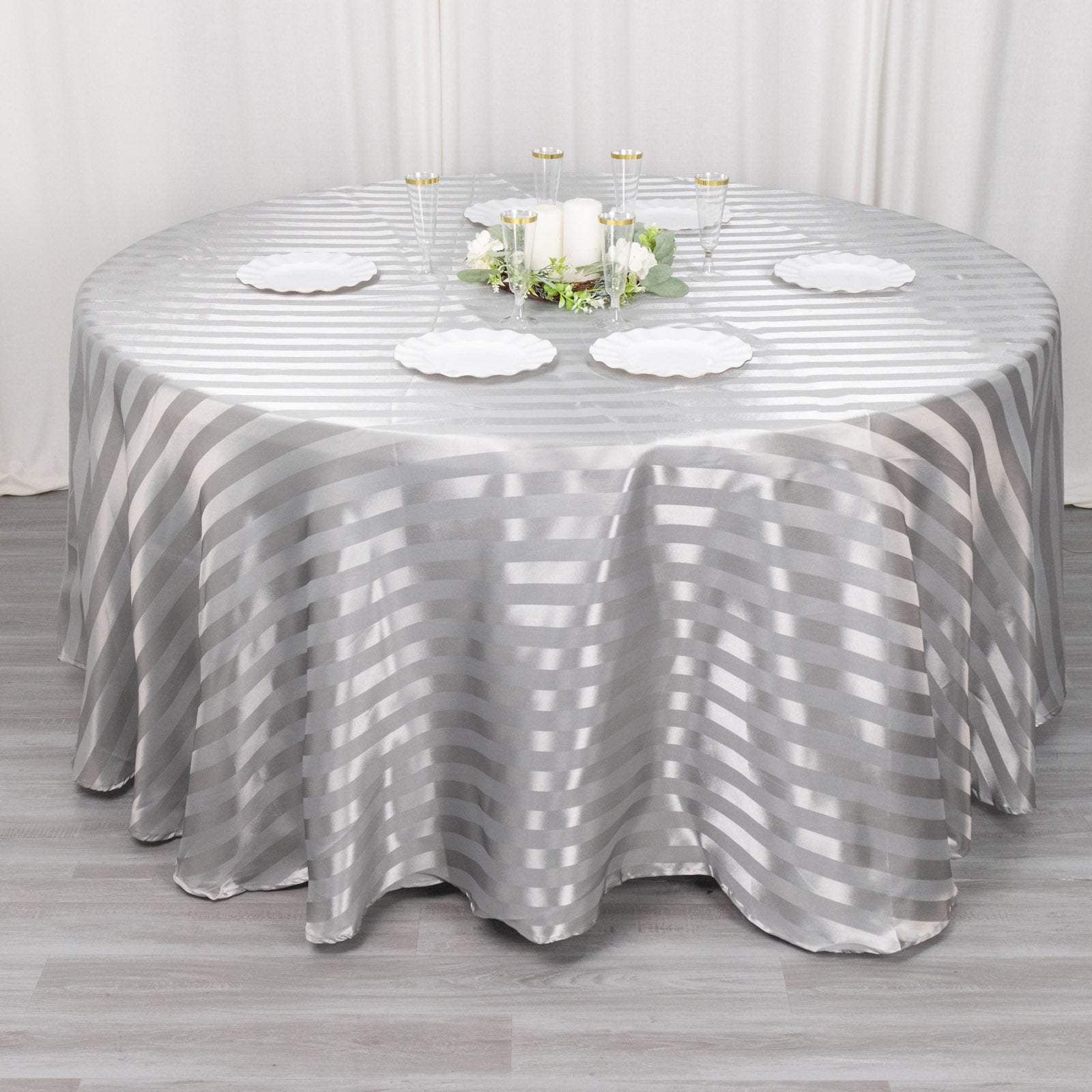 120" Silver Satin Stripe Seamless Round Tablecloth