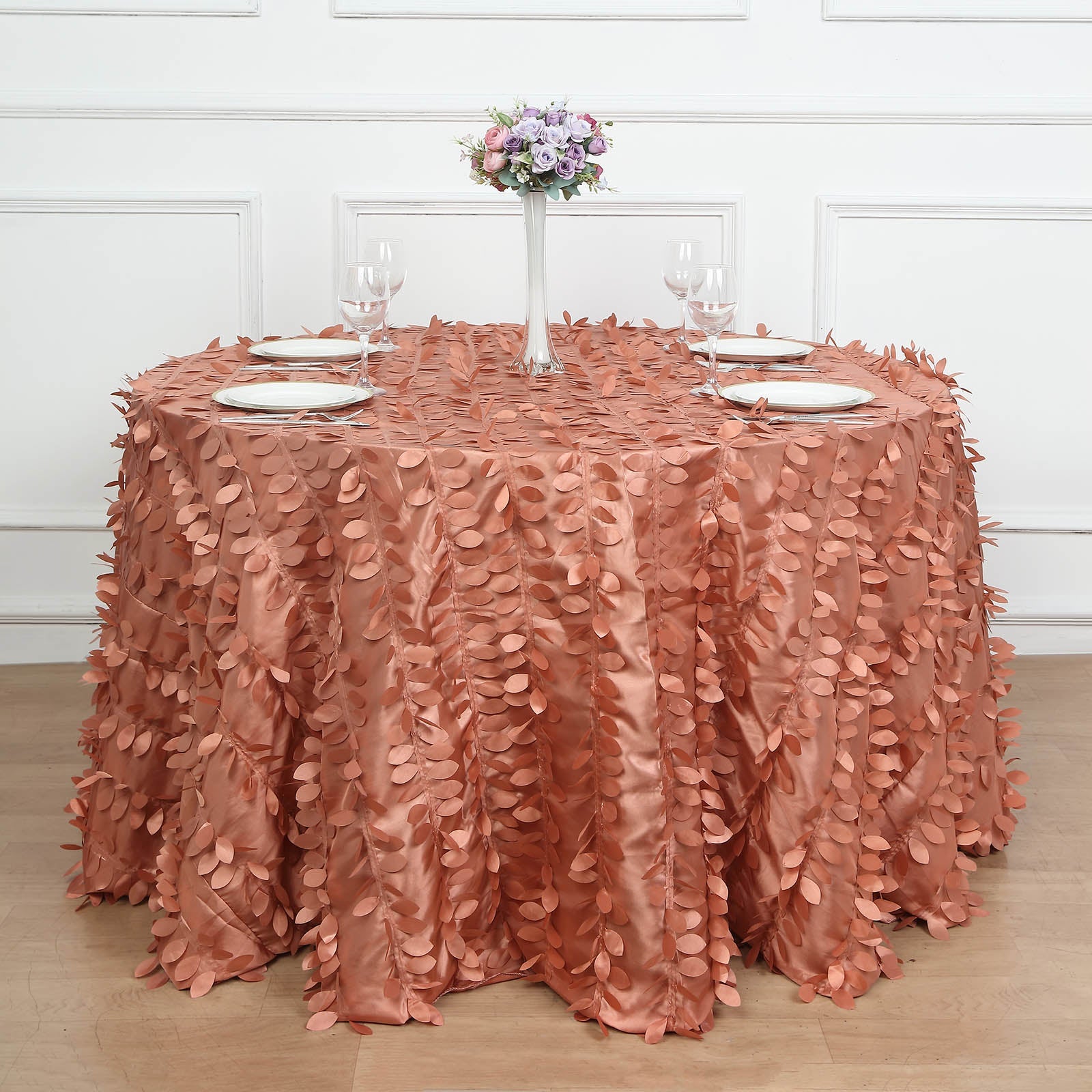 120" Terracotta (Rust) 3D Leaf Petal Taffeta Fabric Seamless Round Tablecloth