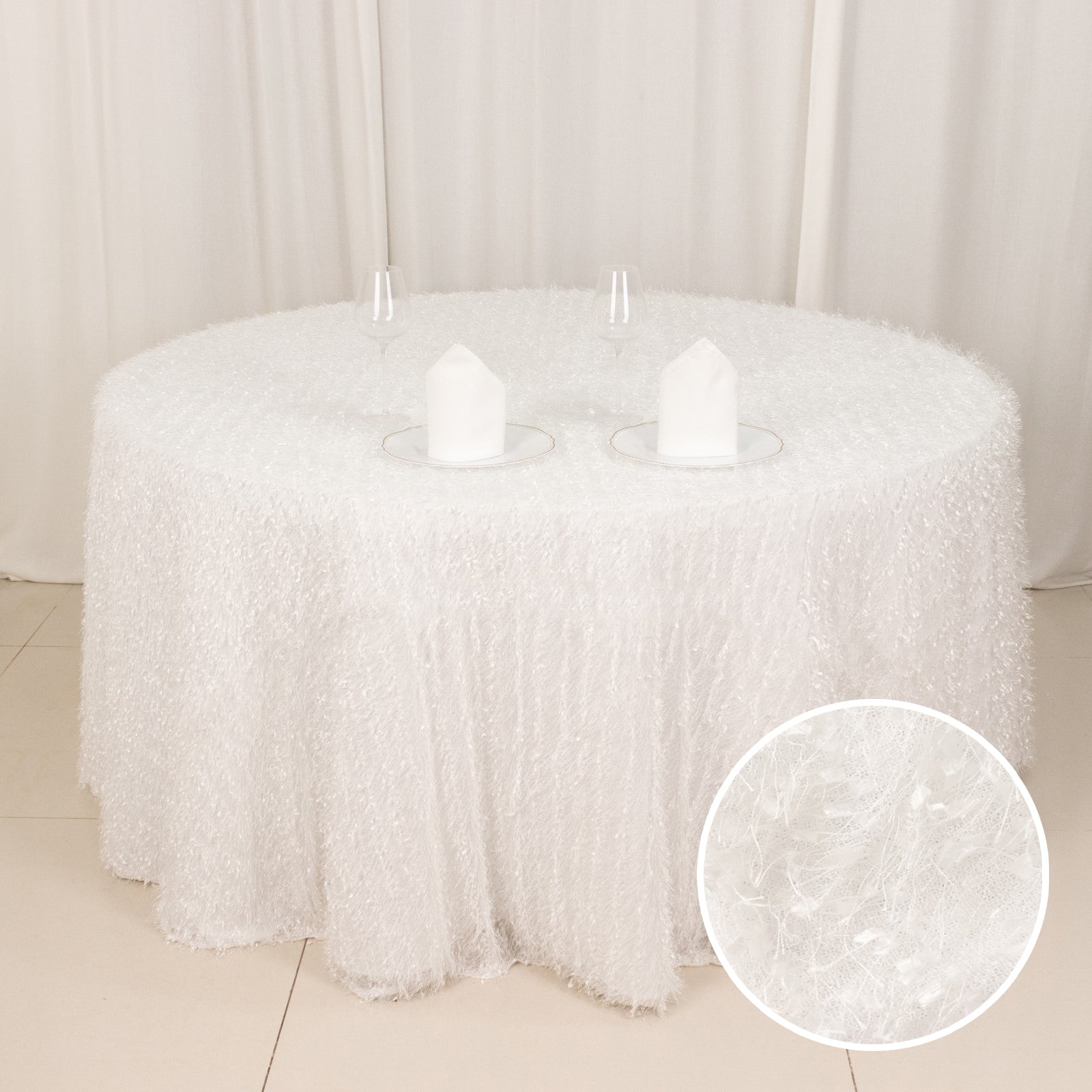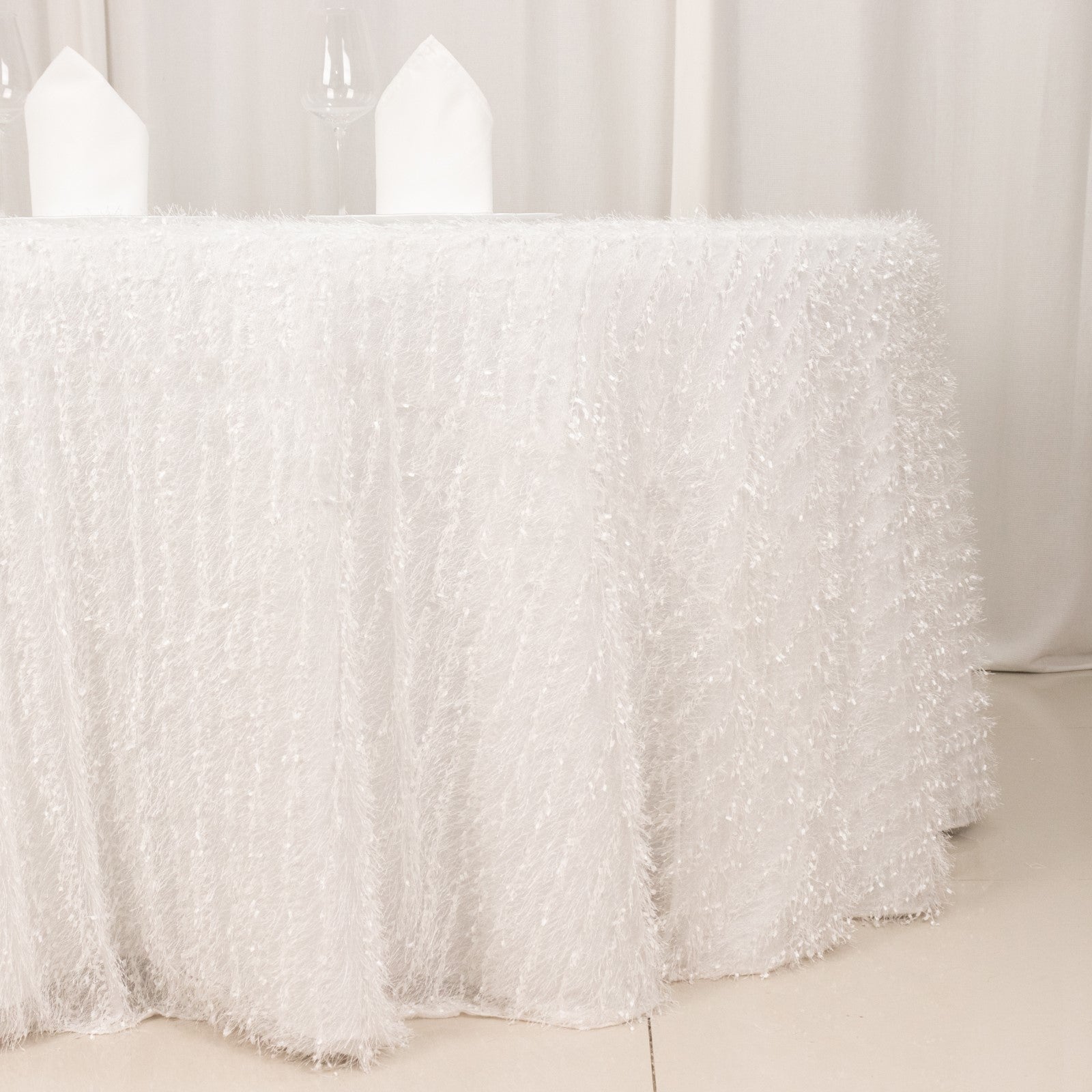 Transform your event into a memorable experience with this exquisite tablecloth. Its unique texture ensures that your decor stands out. Make a lasting impression on your guests with the unmatched elegance of the White Fringe Shag Tablecloth.