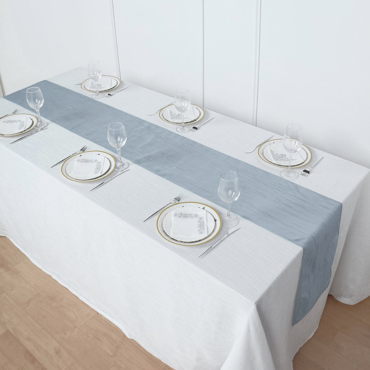 12"x108" Accordion Crinkle Taffeta Table Runner, Elegant Linen Runner - Dusty Blue